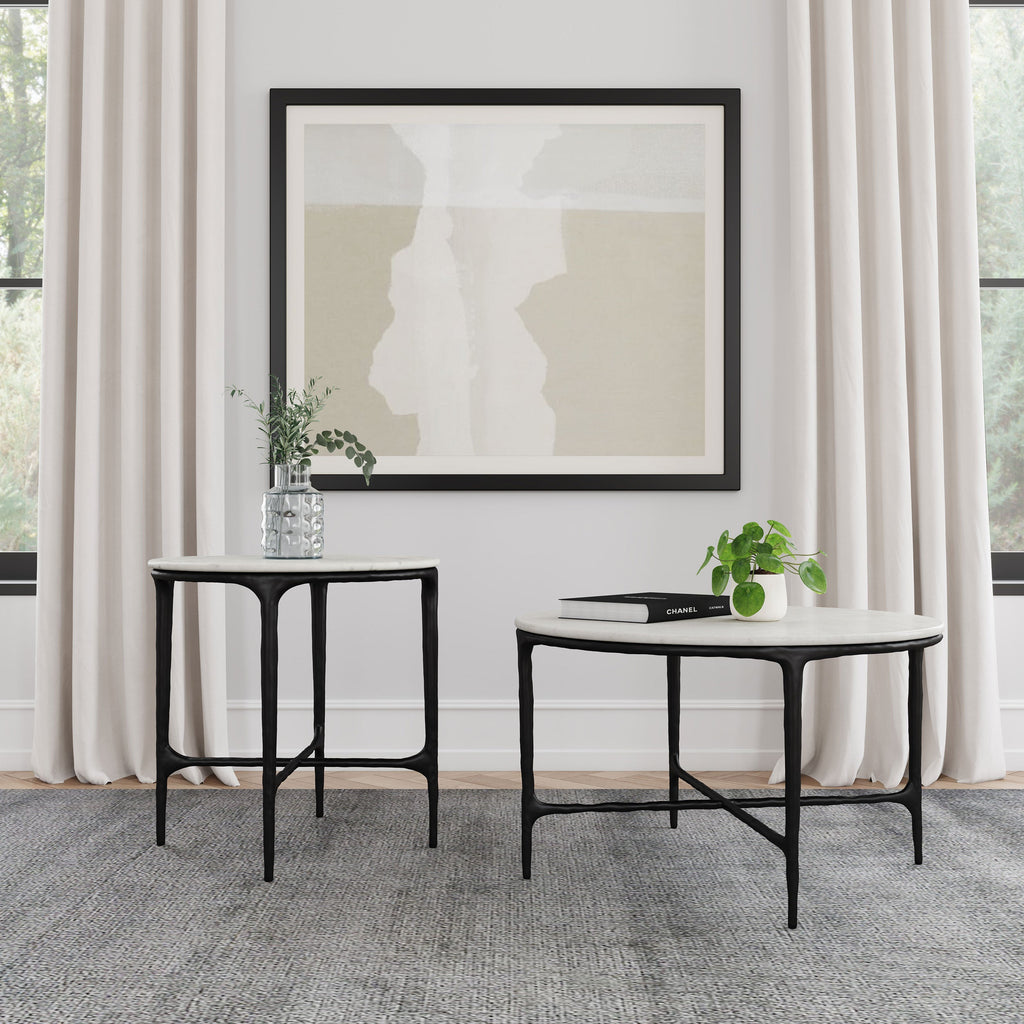 This coffee table’s genuine marble top rests on a sculptural metal frame, its subtly textured legs evoking artisanal craftsmanship. Present it as a center table, enhancing a refined lounge area. The marble surface makes an ideal backdrop for décor, while its stable metal construction suits both formal gatherings and casual cocktail settings. Fully assembled, this low table integrates easily, creating a timeless accent table that whispers modern luxury.