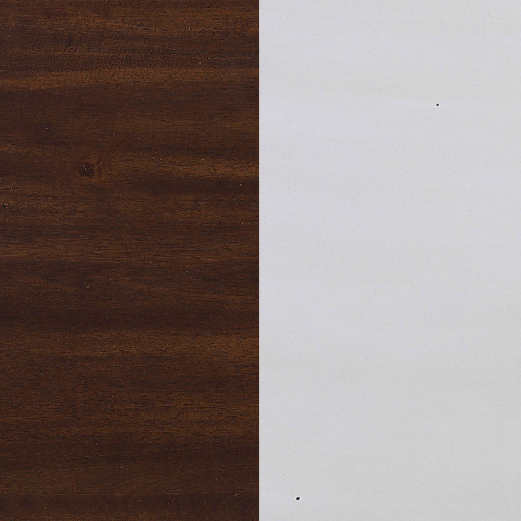 Two-tone finish offers the warmth of wood and modernity of white contrasting finish with gentle distress