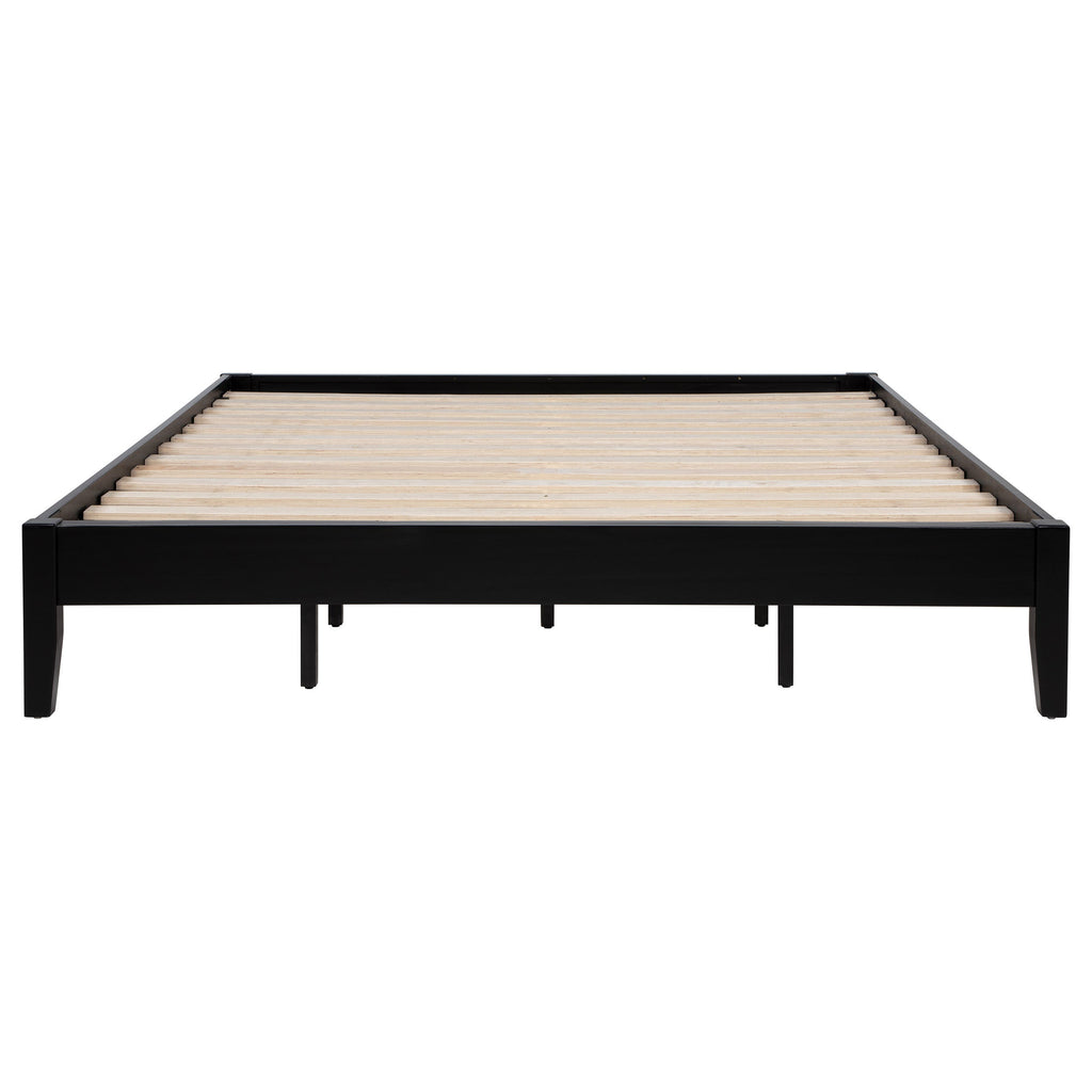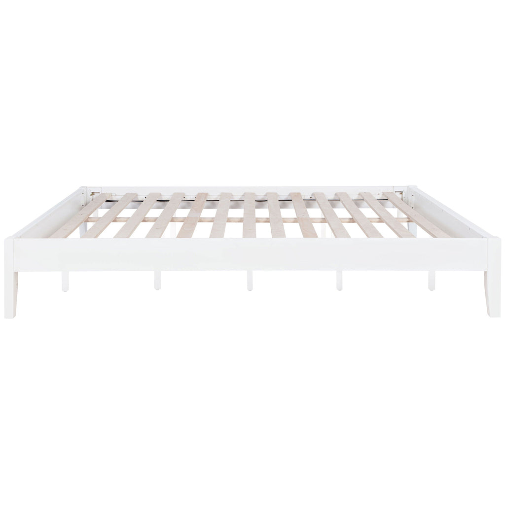 Designed for versatility, this universal platform bed offers a sturdy foundation with a fully slatted, mattress-ready design. Crafted from durable rubberwood and pine, it ensures lasting support and stability. Pre-drilled holes on the back legs allow for effortless headboard attachment, providing customization options to suit various bedroom styles. With its clean lines and solid construction, this bed serves as a functional and stylish base for any sleep space.