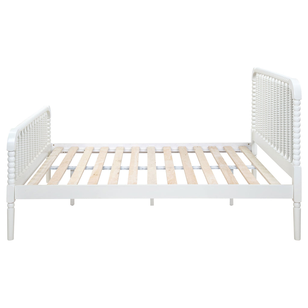 Embrace timeless charm with this Jenny Lind-style platform bed, featuring classic bobbin spindles for a vintage-inspired look. Crafted from solid rubberwood and pine, it offers lasting durability and sturdy support. The gracefully curved headboard and footboard enhance its nostalgic appeal, making it a perfect fit for a guestroom or kids' bedroom. A platform slat base ensures mattress-ready convenience without the need for a box spring, blending traditional design with modern functionality.