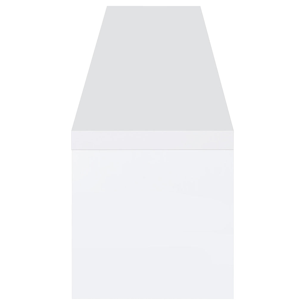 Sleek, modern design with pristine glossy white-on-white finish and clear glass details