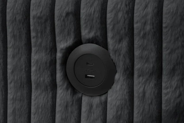The July Black is engineered with an incredible array of built-in conveniences. For the ultimate guest experience, it features a seamless Pull Out Bed, instantly transforming your lounge into a comfortable sleeping area. Efficiency is at the heart of this design, boasting two Storage Chaises that provide hidden compartments for blankets, pillows, or board games, keeping your space clutter-free. The center backrest features a Drop Down Table with Cup-Holders, perfect for movie nights, while integrated USB Charging ports ensure your devices stay powered without ever having to leave your seat. With a generous 123.5-inch width, this sectional offers a sprawling social hub that balances high-density plush comfort with unmatched utility.