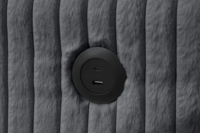 The July Charcoal is an engineering marvel designed to solve every living room challenge. It features a seamless Pull Out Bed, allowing you to transition from a high-end lounge to a guest suite in seconds. Organization is built directly into the frame with two Storage Chaises, providing massive hidden compartments to keep blankets, pillows, and media essentials out of sight but within reach. For the ultimate "smart" lounging experience, the center backrest folds down into a Drop Down Table with Cup-Holders, while integrated USB Charging ports ensure your devices stay powered throughout the day. With a sprawling 123.5-inch width and symmetrical double chaises, this sectional offers a grand social hub where every technological convenience is seamlessly integrated into plush, high-density comfort.