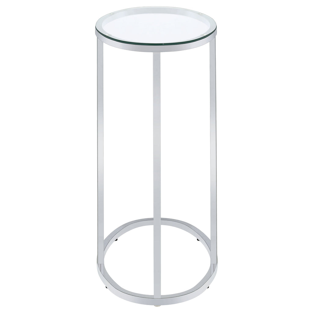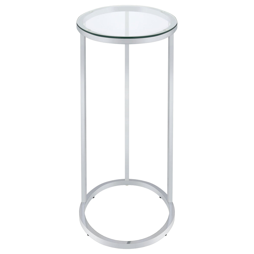 This oval side table features a sleek, modern design with a clear tempered glass top that offers both durability and elegance. Its minimalist metal frame, electroplated in chrome, provides a polished, reflective finish that enhances its contemporary aesthetic. Designed for versatility, this c-table is perfect for small spaces or as a functional accent piece next to a sofa or chair, adding a touch of style and practicality to your living room.