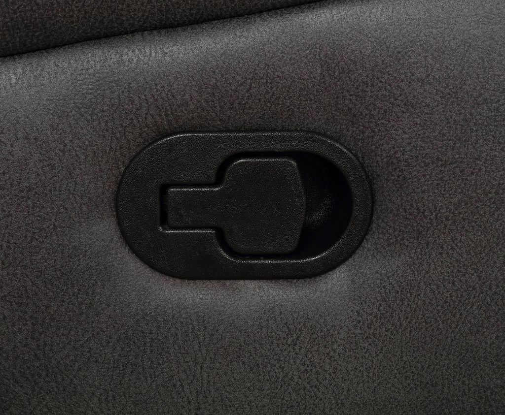 Motion sofa upholstered in charcoal performance-grade coated microfiber