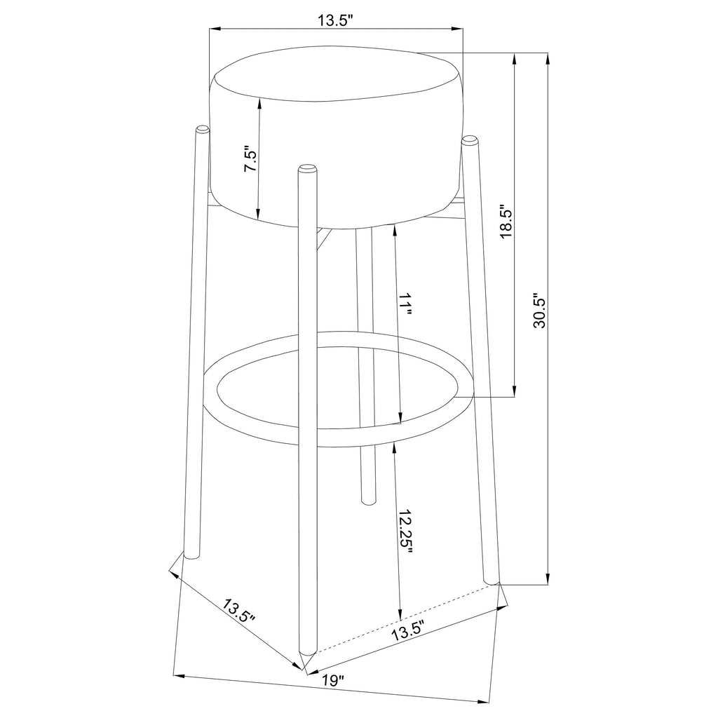 Bar Stool: Width: 19.00, Depth: 19.00, Height: 30.50, Weight: 13.86