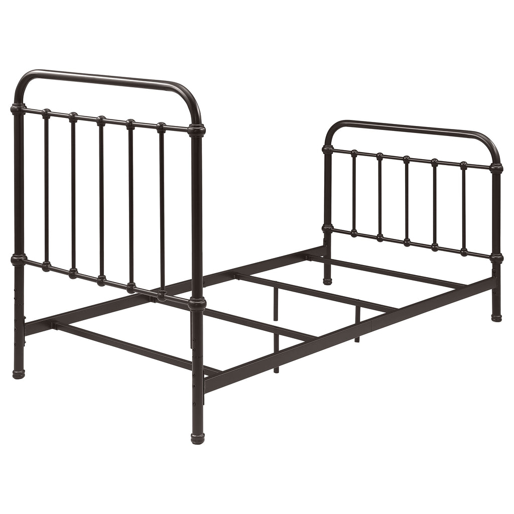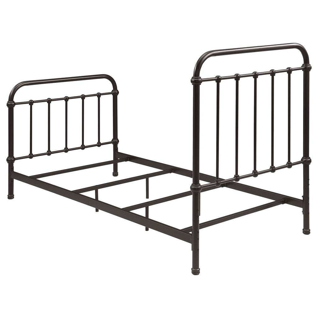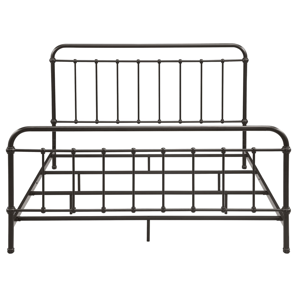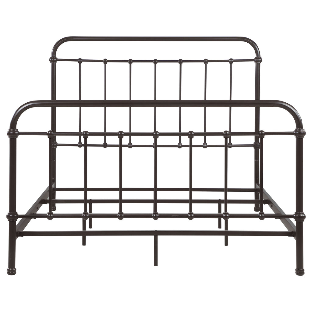 Bring vintage-inspired charm to your bedroom with this farmhouse-style metal bed. Designed with a sturdy heavy-gauge metal frame, it features a dark bronze powder-coated finish that enhances its timeless appeal. The headboard and footboard showcase a vertical spindle design with continuous weld construction for added strength and durability. Built for stability and long-lasting use, this bed adds rustic elegance to both modern and classic interiors.