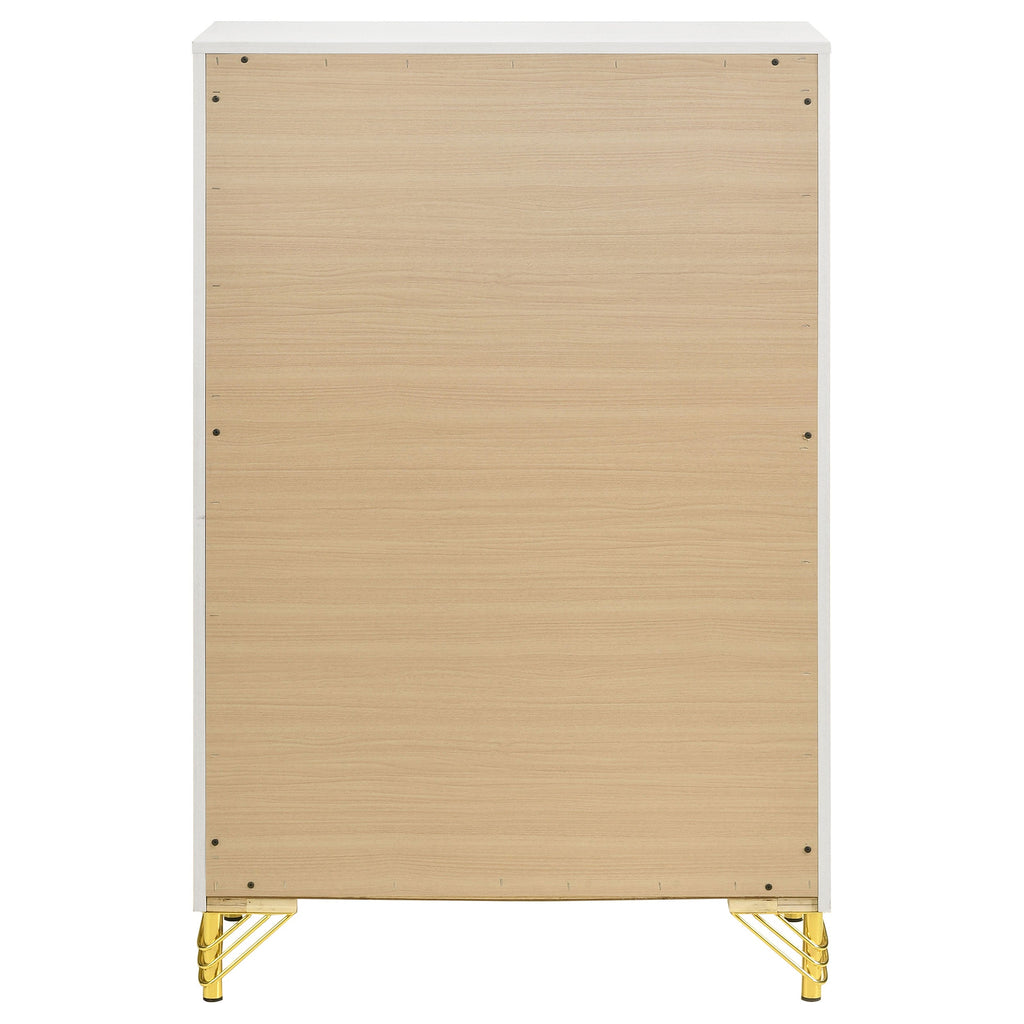 Chic touches bring glamour and elegant flair to a modern five-drawer chest