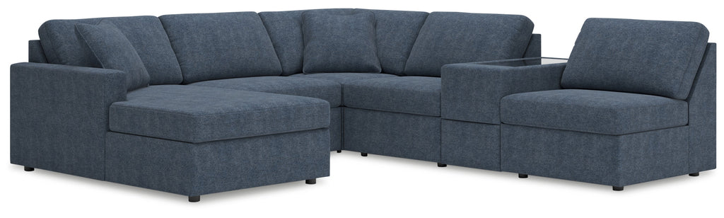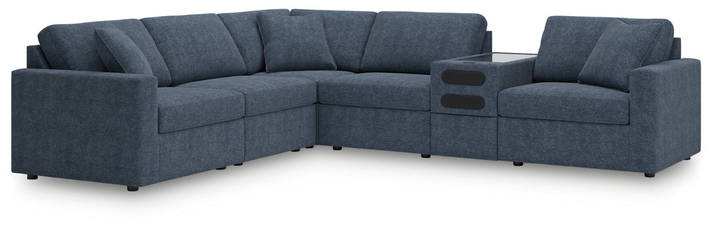 - Includes 3 modular pieces: left-arm facing corner chair, audio console with storage and right-arm facing corner chair