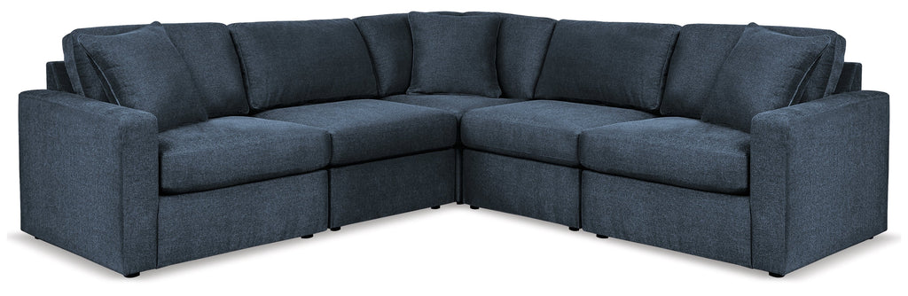 Includes 4 modular pieces: left-arm facing corner chair, 2 armless chairs and right-arm facing corner chair