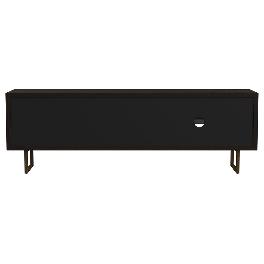 Elevate your entertainment area with a TV stand featuring a dramatic charcoal black finish, infusing a bold and elegant touch
