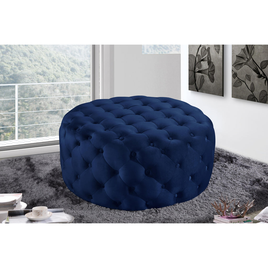 Rest weary legs at day's end atop the welcoming comfort of this Addison navy velvet ottoman. This Hollywood-inspired ottoman features deep button tufting from top to bottom for a luxe look and is covered in velvety upholstery for added glam. The vibrant navy color makes a bold statement in your space and adds a pop of cheery color to your room. This substantially sized ottoman also doubles as an extra seat and is padded thickly for supreme comfort.