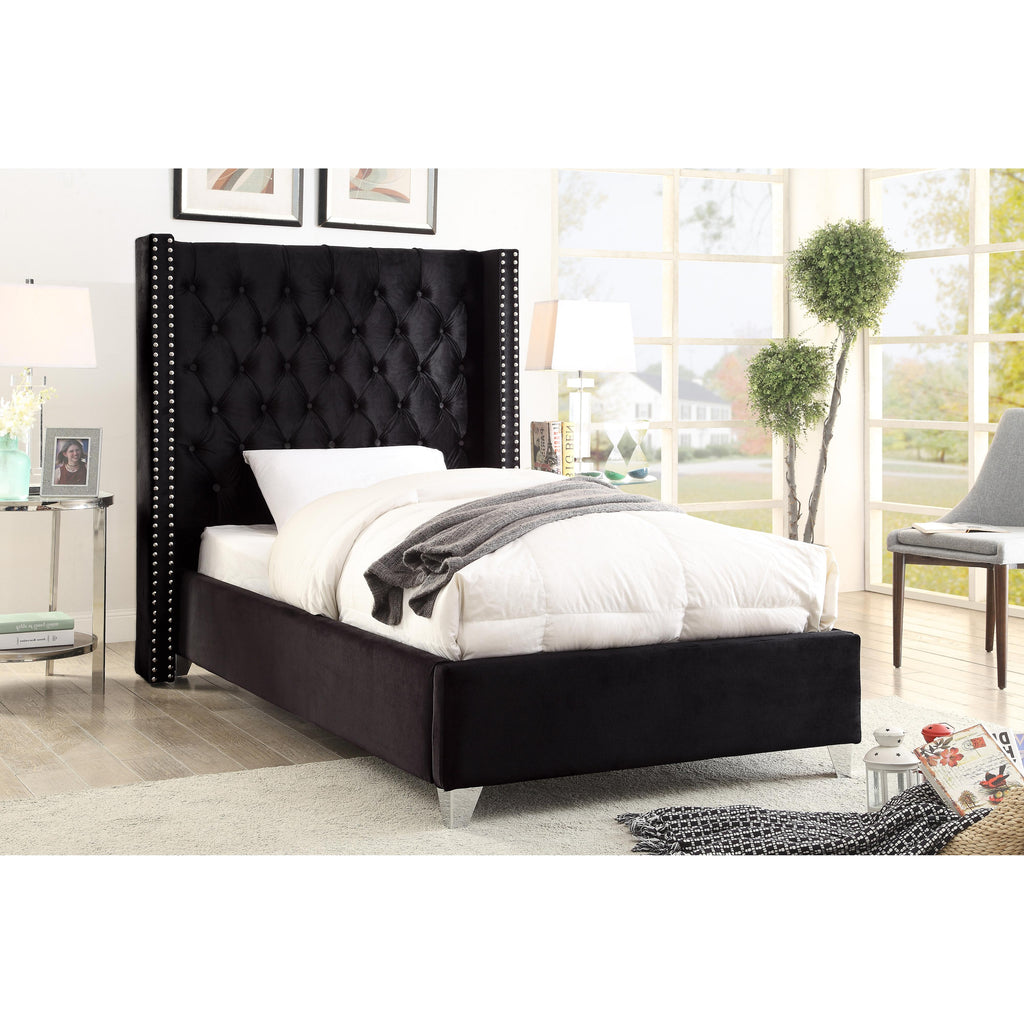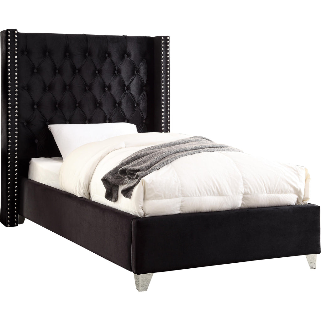 Meridian SKU: Aiden Black Velvet Twin Bed