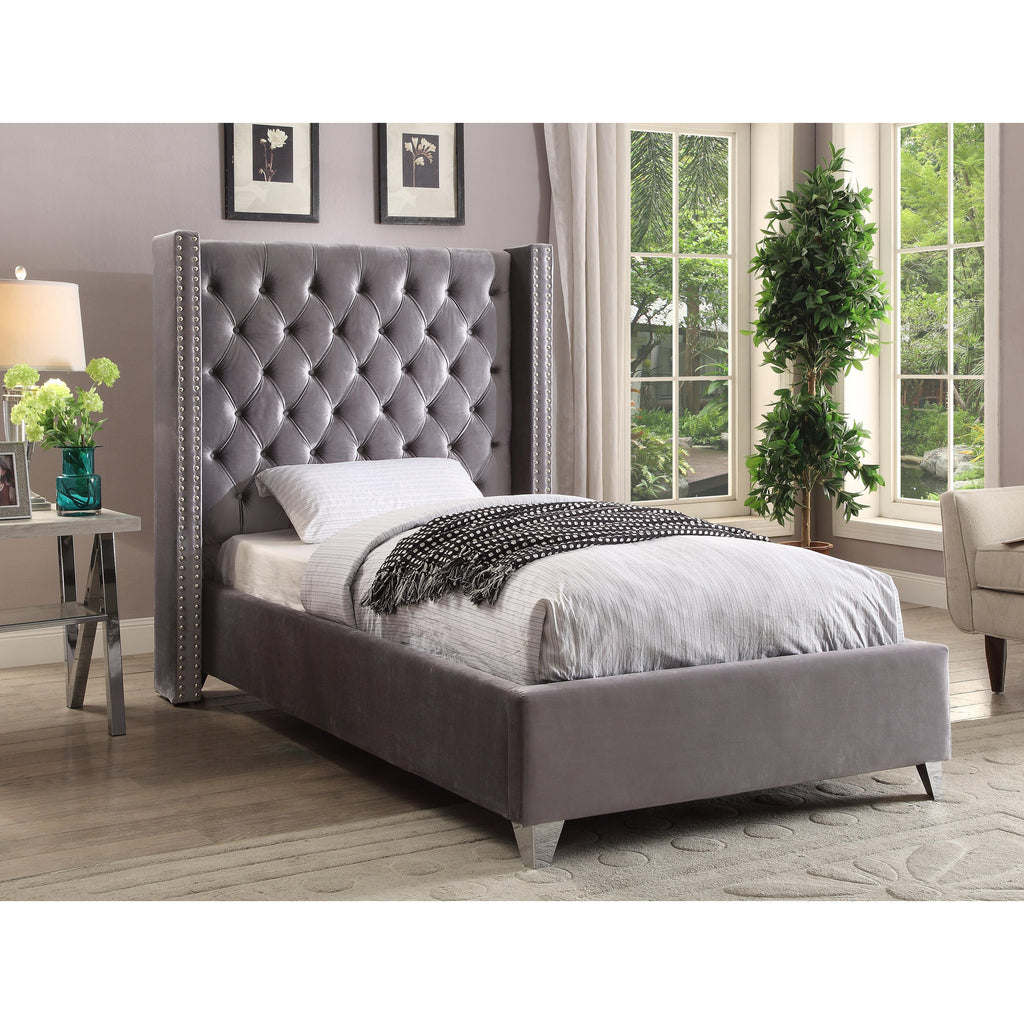 Meridian Aiden Grey Velvet Twin Bed