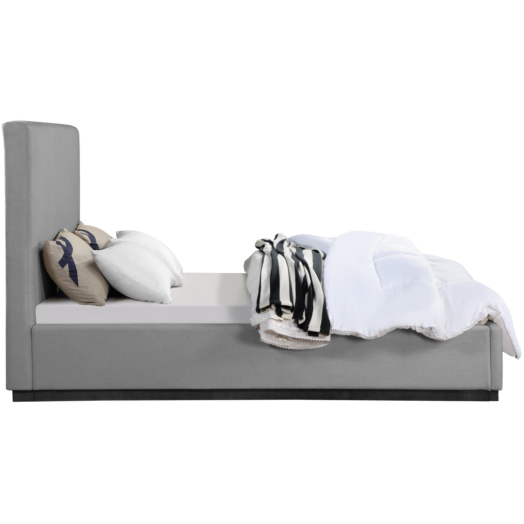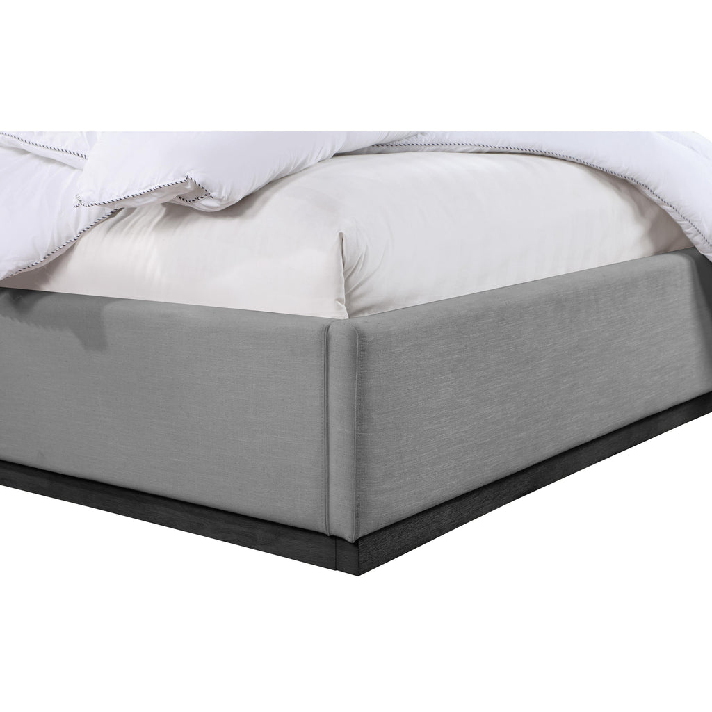Give your bedroom a regal vibe when you add this Alfie linen textured fabric bed to the mix. The ultra tall headboard on this queen-size bed makes a bold impression from all angles and is covered in rich grey linen textured fabric that forms a pleasant contrast with the black finish solid wood base. The full flat design lets you easily use this bed without a box spring - a top mattress is all that's needed.