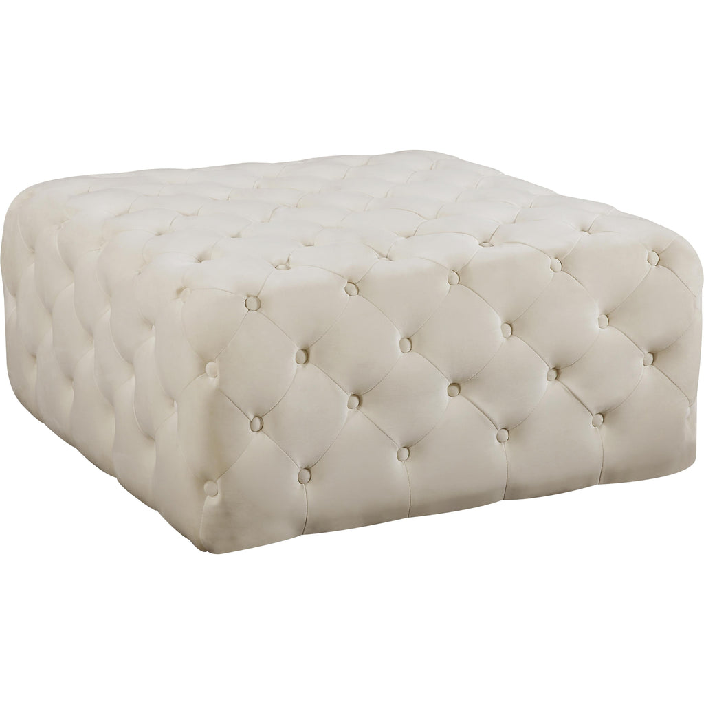 Make this Ariel cream velvet ottoman/bench part of your relaxation ritual. This welcoming ottoman has a lavish look with its deep button-tufting and lush velvet upholstery. The soft cream color lends a cheery feel to your room and has a shiny sheen that gives it a sumptuous and welcoming look. This glamorous-looking ottoman is an ideal foot prop at the end of the day and also doubles as an additional seat on family game night.