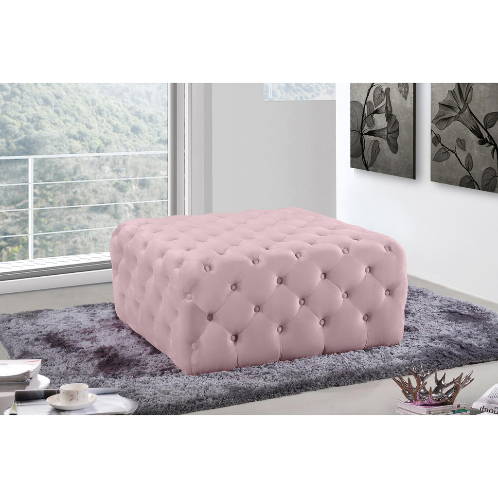 Make this Ariel pink velvet ottoman/bench part of your relaxation ritual. This welcoming ottoman has a lavish look with its deep button-tufting and lush velvet upholstery. The soft pink color lends a cheery feel to your room and has a shiny sheen that gives it a sumptuous and welcoming look. This glamorous-looking ottoman is an ideal foot prop at the end of the day and also doubles as an additional seat on family game night.