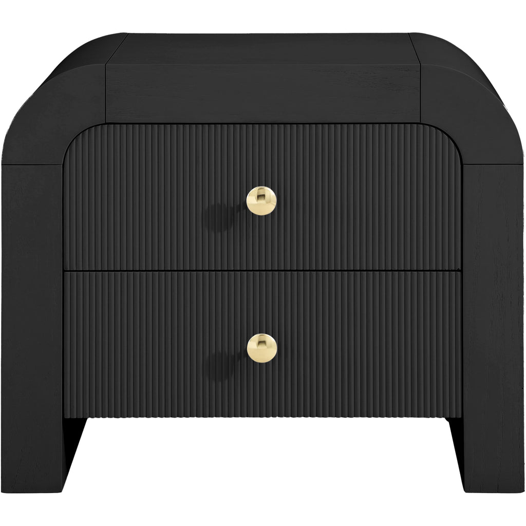 Make organizing a stylish affair when you bring home this Artisto nightstand. This beautiful nightstand features an elegantly eye-catching design with its rich wood veneer black finish and its textured drawer front designs. Two drawers give you oodles of room for storing items out of sight and out of mind, and the roomy drawers make sure that organizational power is at your fingertips. For versatility, both gold and chrome handles are included with the nightstand.
