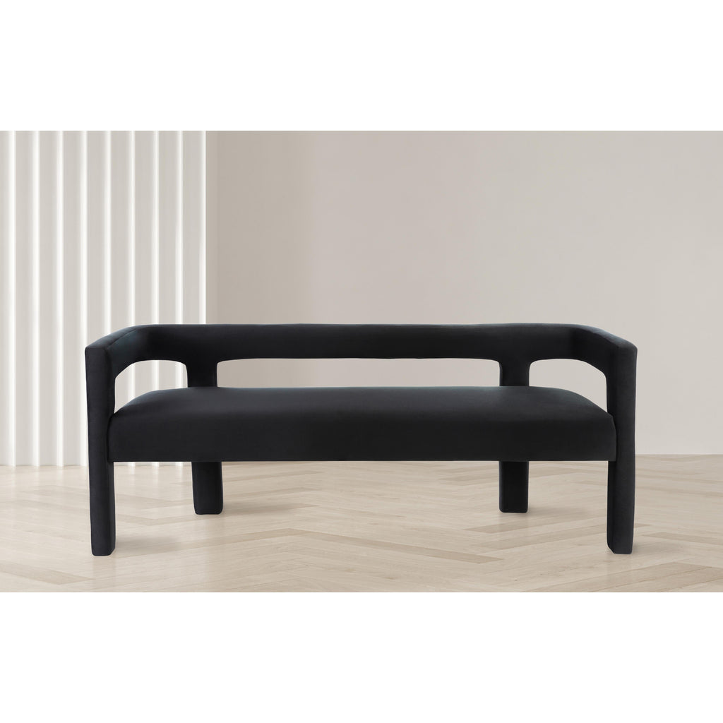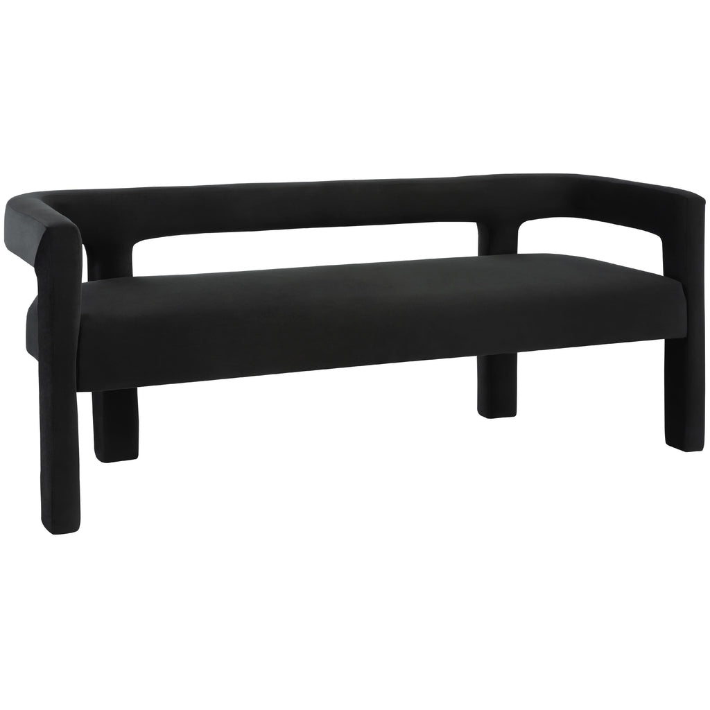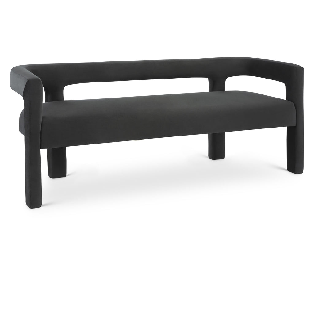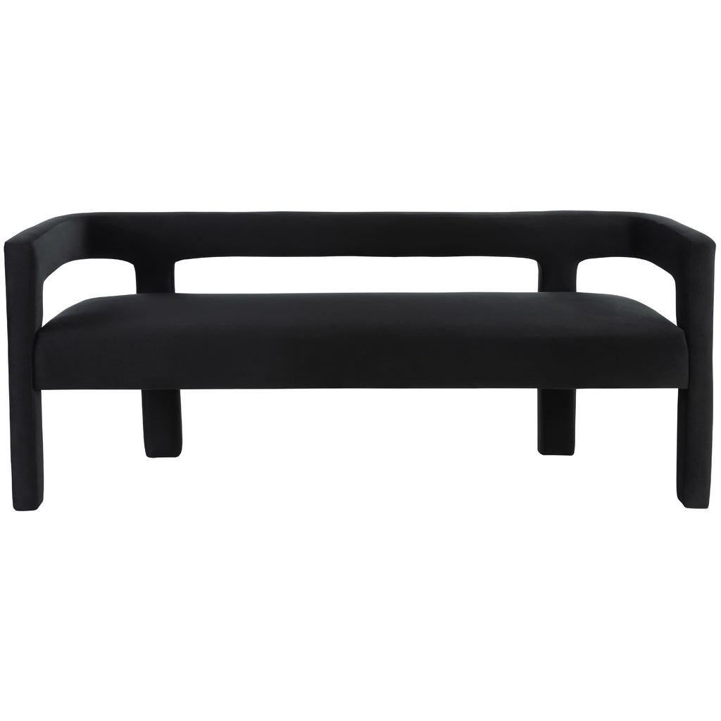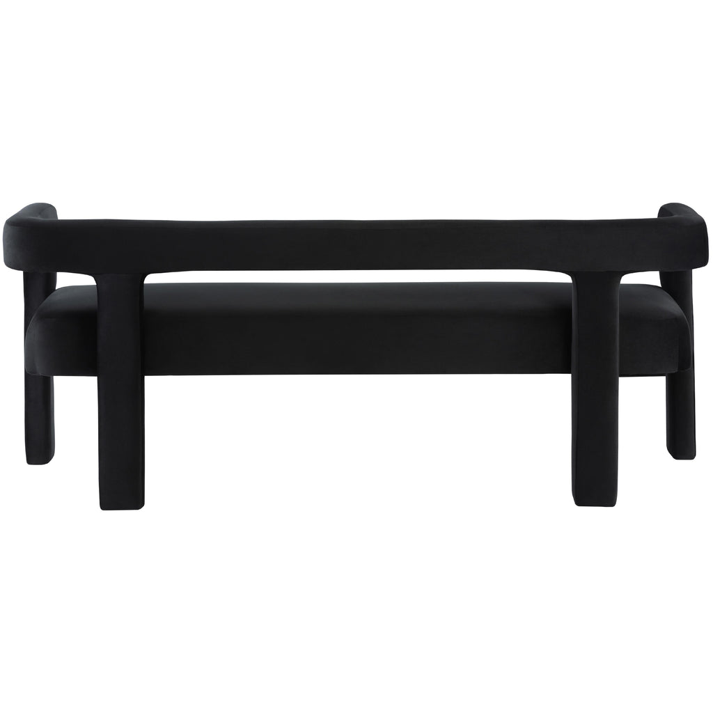Flaunt your modish tastes with this Athena black velvet bench. Sophisticated by design, this dining room seating offers a sturdy frame made from high-quality materials and upholstered in soft welcoming velvet, so it always feels comfortable for family and guests. A low back provides a clean aesthetic while offering support as you wine and dine the night away. Pair it with other items in the same collection for a cohesive look.