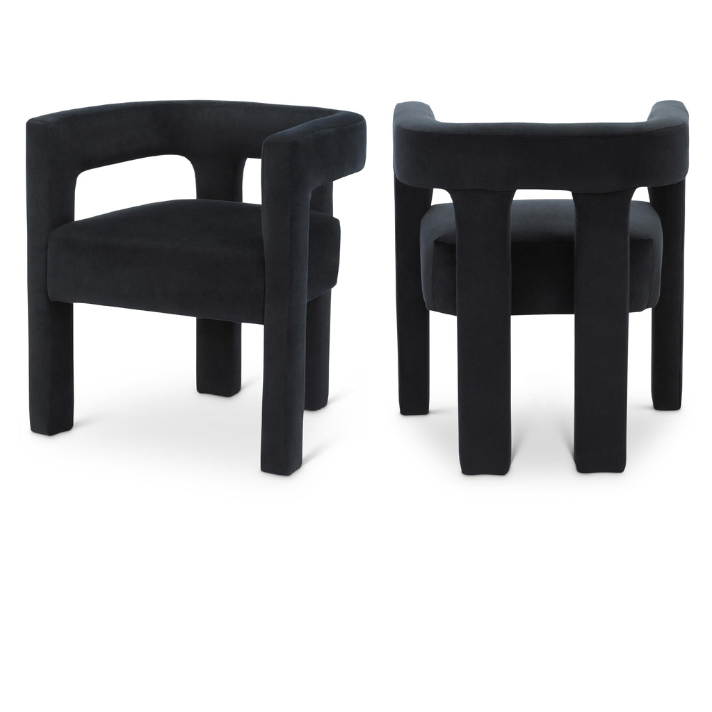 Flaunt your modish tastes with this Athena black velvet dining chair. Sophisticated by design, this dining room seating offers a sturdy frame made from high-quality materials and upholstered in soft welcoming velvet, so it always feels comfortable for family and guests. A low back provides a clean aesthetic while offering support as you wine and dine the night away. Pair it with other items in the same collection for a cohesive look.