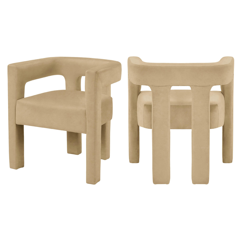 Flaunt your modish tastes with this Athena camel velvet dining chair. Sophisticated by design, this dining room seating offers a sturdy frame made from high-quality materials and upholstered in soft welcoming velvet, so it always feels comfortable for family and guests. A low back provides a clean aesthetic while offering support as you wine and dine the night away. Pair it with other items in the same collection for a cohesive look.