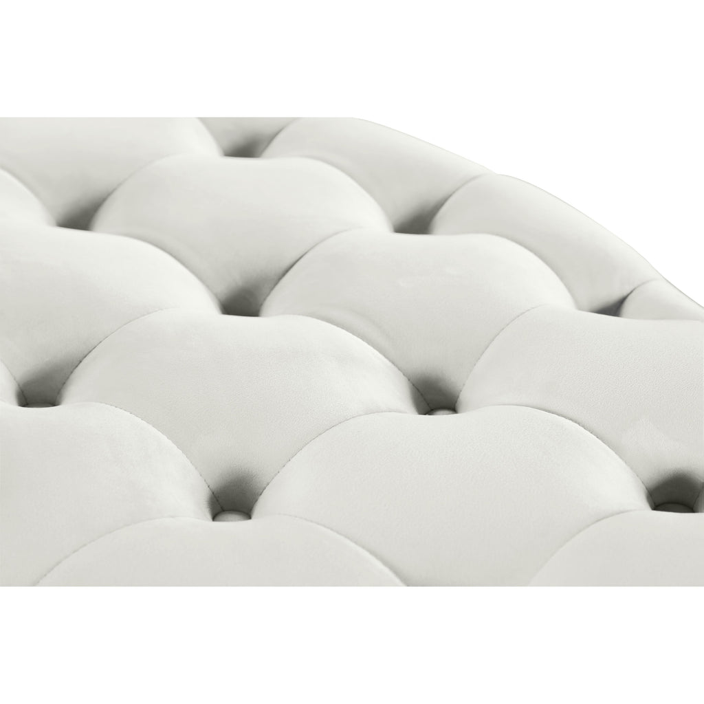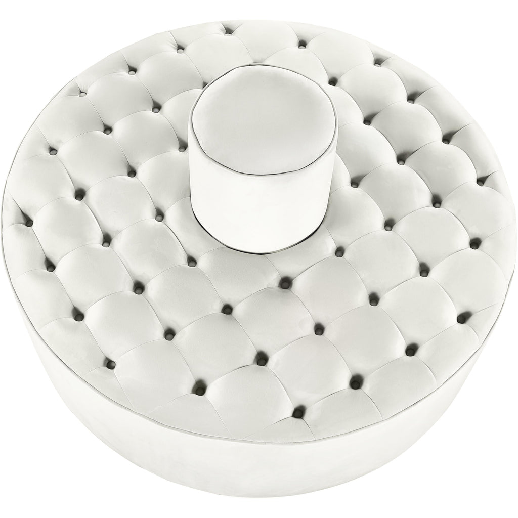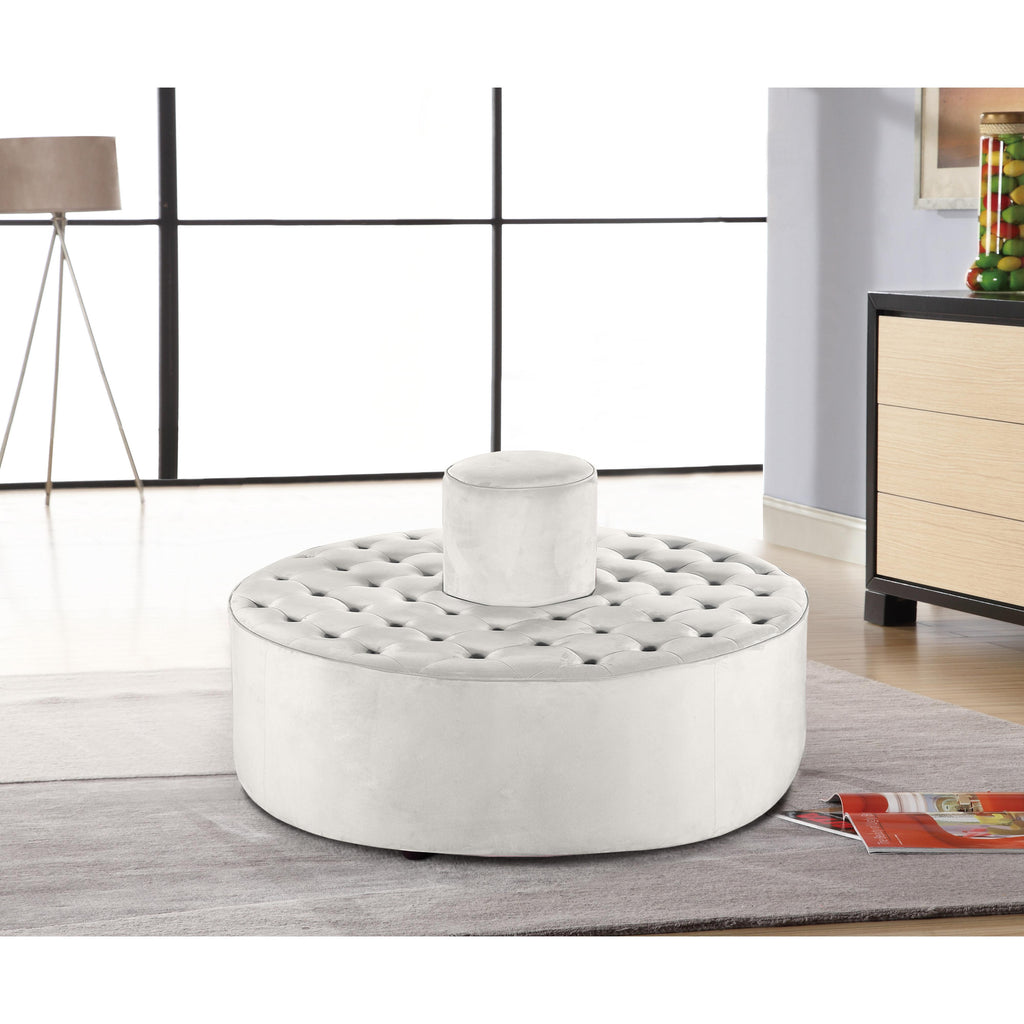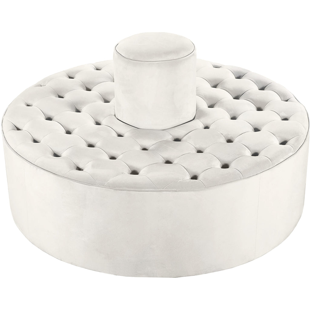 Infuse your space with modern style when you bring home this Banquet Cream Velvet Roundabout ottoman/bench combo from Meridian Furniture. This elegant accent provides the perfect spot for propping your feet up after a long day at the office, or put it to work as impromptu seating when you have company over. The chic and contemporary upholstery, and deep tufting on the top gives this piece a sumptuous feel while keeping the ottoman's cushion aloft for a luxe look.