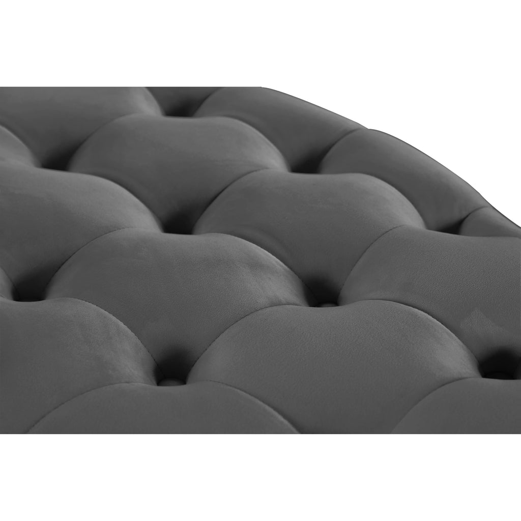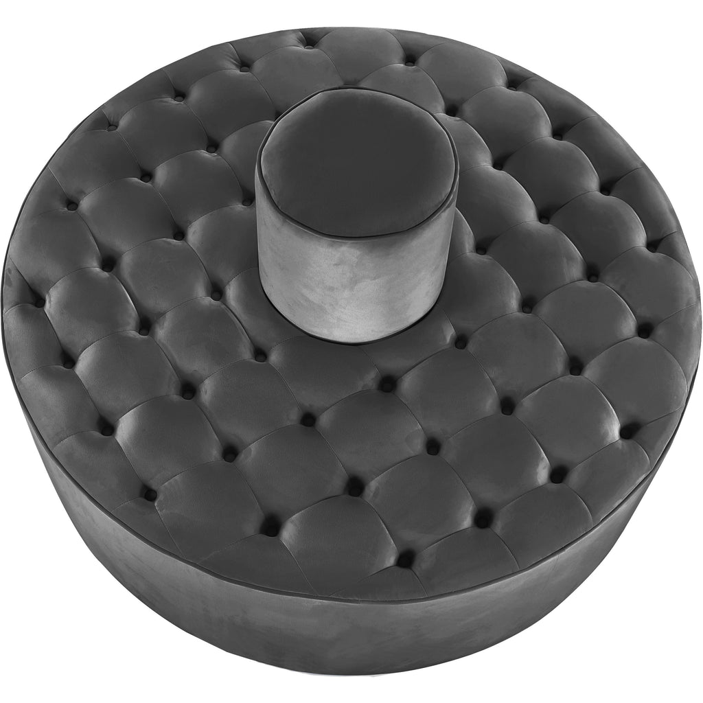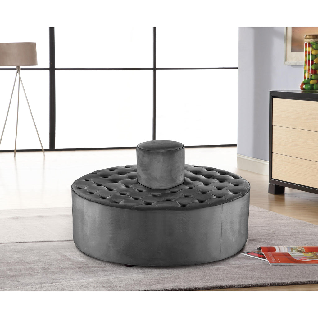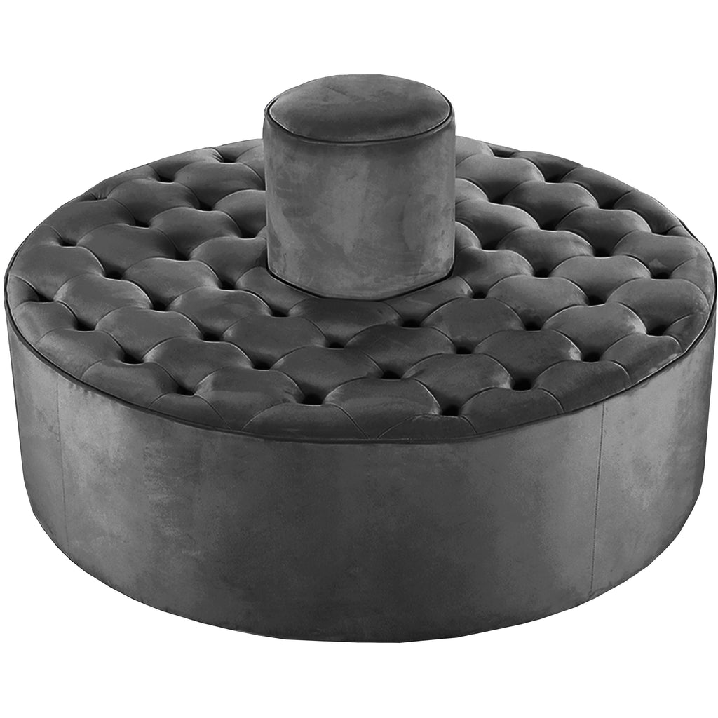 Infuse your space with modern style when you bring home this Banquet Grey Velvet Roundabout ottoman/bench combo from Meridian Furniture. This elegant accent provides the perfect spot for propping your feet up after a long day at the office, or put it to work as impromptu seating when you have company over. The chic and contemporary upholstery, and deep tufting on the top gives this piece a sumptuous feel while keeping the ottoman's cushion aloft for a luxe look.
