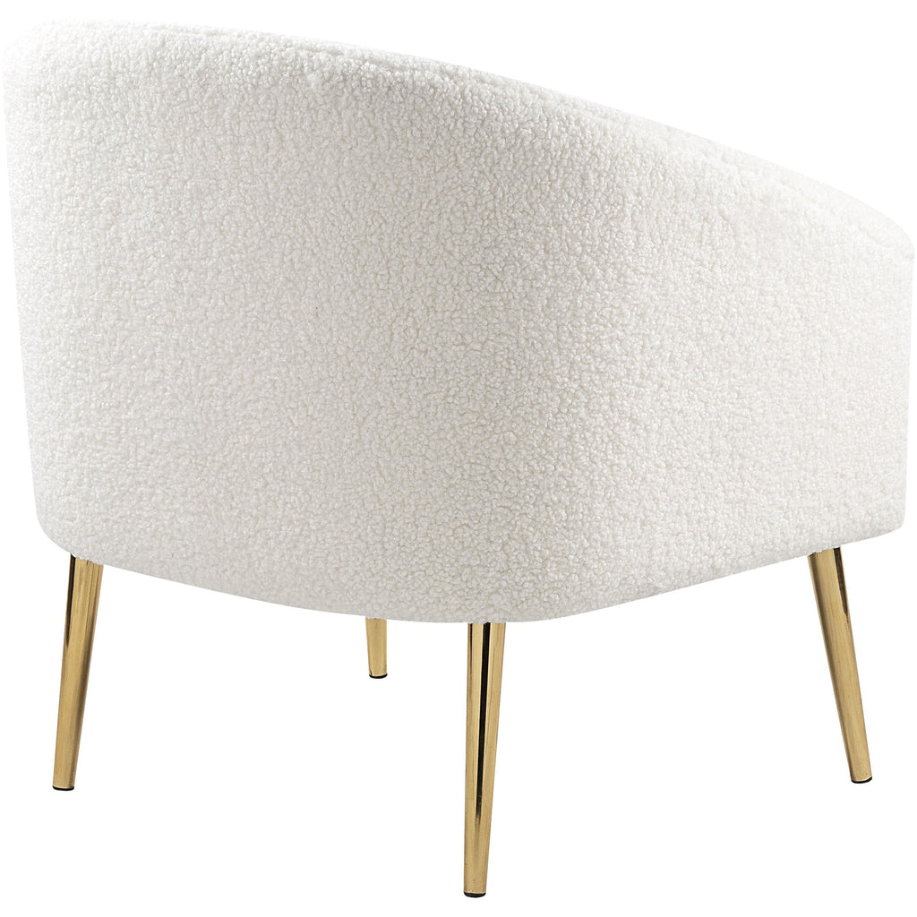 Sit in the lap of luxury when you bring home this Barlow faux fur chair.you'rell thinkyou'reve hit the big time whenyou'rere sitting pretty in this beautiful chair with its soft faux sheepskin fur upholstery. This Barlow chair rests on rich gold metal legs for a burst of contemporary oomph. Settle into the barrel-style chair while you read a good book or just unwind at day's end.