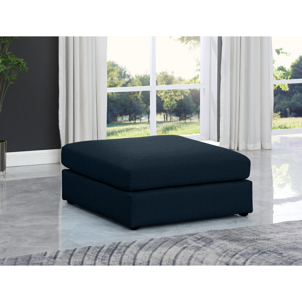 Liven up your living space with this Beckham navy durable linen polyester fabric ottoman. Its navy color complements any contemporary home decor, while its durable linen and polyester fabric upholstery provides you with a soft and comfortable place to sit. This ottoman is modular, so you can create infinite configurations, which are easily attached using the attachment latch underneath. Its linen, wood, and foam construction guarantee stability for years to come.