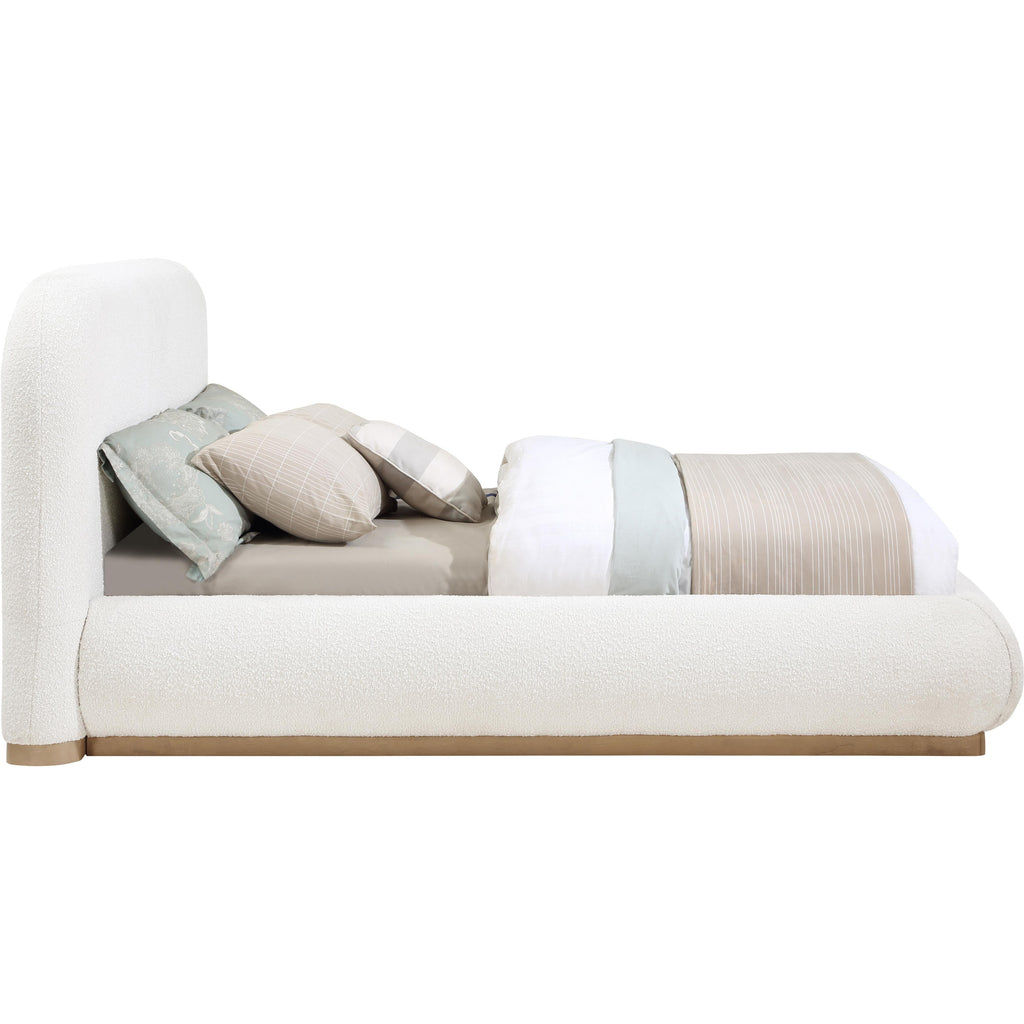 Transform your bedroom into a cozy and inviting retreat with the Vaughn Full Bed. With its rich cream boucle textured fabric and solid wood base in a natural finish, this bed exudes a warm and inviting ambiance that will make you feel right at home. Its soft and plush surface provides a cozy and comfortable retreat, while its sturdy and durable construction ensures that you can enjoy long-lasting comfort. So go ahead, treat yourself to a restful night's sleep in this exquisite bed, and wake up feeling refreshed and rejuvenated.
