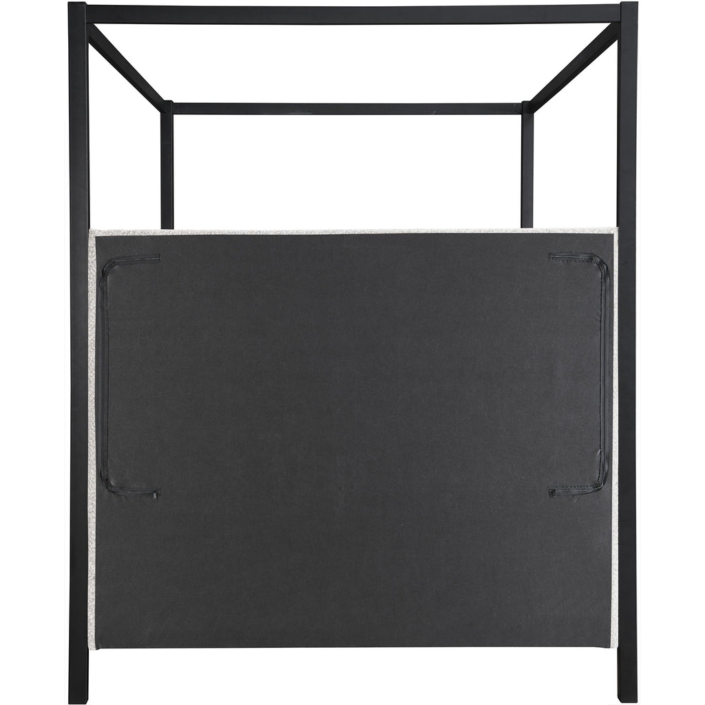 Immerse yourself in a haven of tranquility and refined design with the Kelly Full-sized Boucle Fabric Bed. This captivating centerpiece seamlessly blends the rich texture of cream boucle fabric with a salt & pepper-colored undertone, creating a visual harmony that elevates your bedroom while fostering restful nights. The matte black iron metal frame canopy adds a touch of drama and elegance, transforming your space into a private sanctuary. Imagine the soft glow of fairy lights draped across the canopy, creating a magical ambiance perfect for unwinding after a long day or enjoying a cozy reading nook. This canopy provides not only a touch of privacy but also an opportunity to personalize your space and create a truly unique retreat.