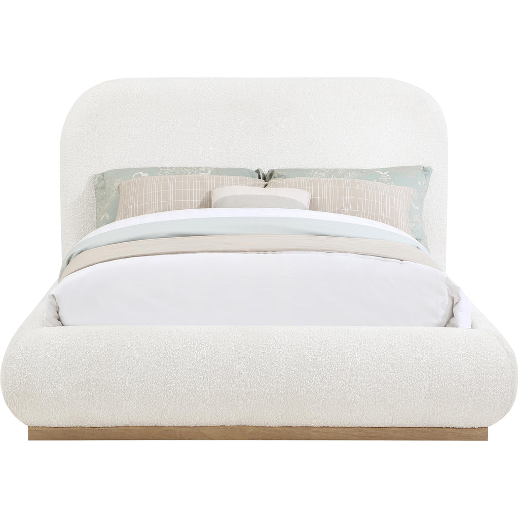 Transform your bedroom into a cozy and inviting retreat with the Vaughn Queen Bed. With its rich cream boucle textured fabric and solid wood base in a natural finish, this bed exudes a warm and inviting ambiance that will make you feel right at home. Its soft and plush surface provides a cozy and comfortable retreat, while its sturdy and durable construction ensures that you can enjoy long-lasting comfort. So go ahead, treat yourself to a restful night's sleep in this exquisite bed, and wake up feeling refreshed and rejuvenated.