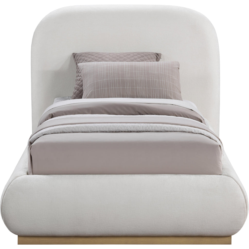 Transform your bedroom into a cozy and inviting retreat with the Vaughn Twin Bed. With its rich cream chenille textured fabric and solid wood base in a natural finish, this bed exudes a warm and inviting ambiance that will make you feel right at home. Its soft and plush surface provides a cozy and comfortable retreat, while its sturdy and durable construction ensures that you can enjoy long-lasting comfort. So go ahead, treat yourself to a restful night's sleep in this exquisite bed, and wake up feeling refreshed and rejuvenated.