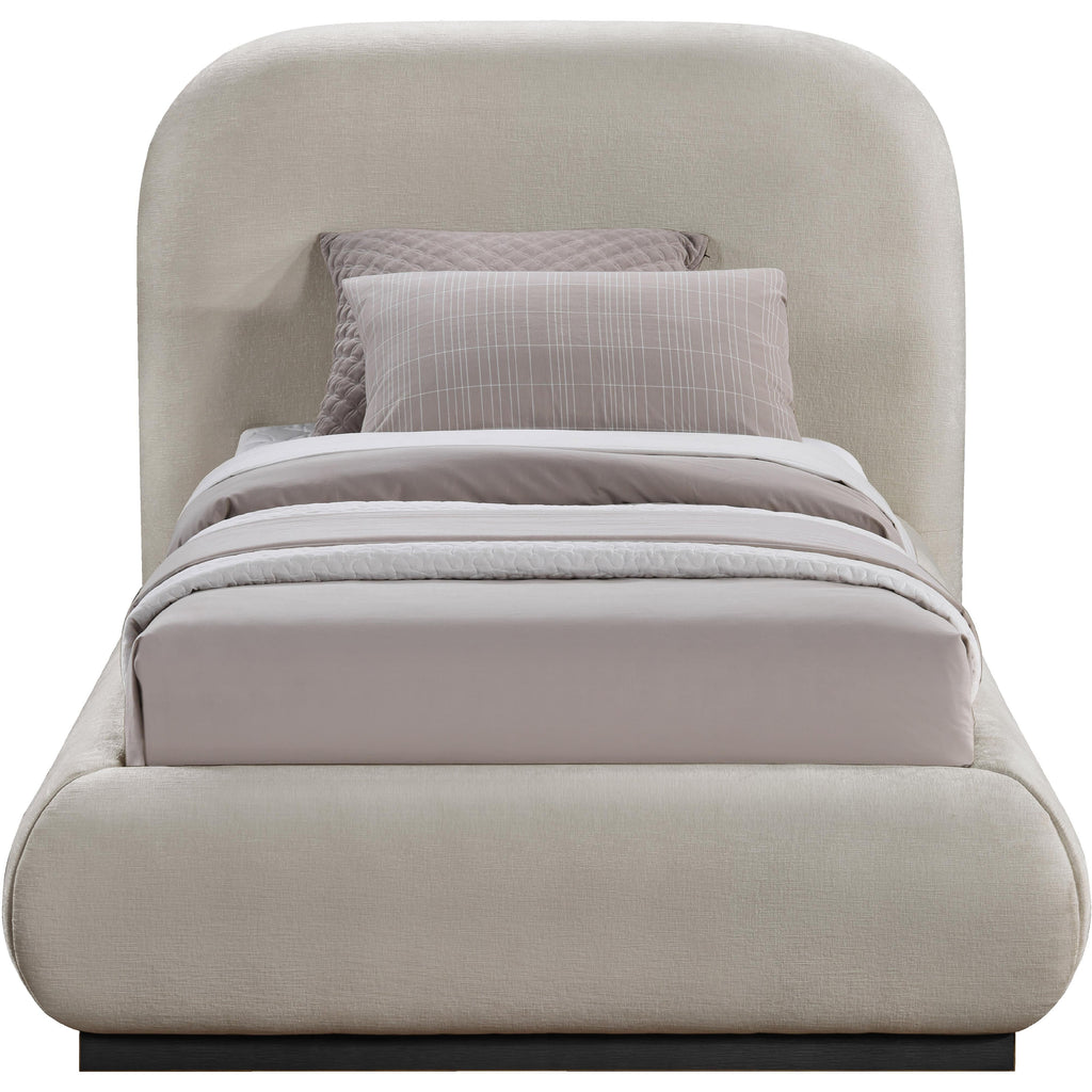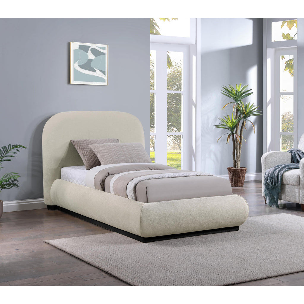Transform your bedroom into a cozy and inviting retreat with the Vaughn Twin Bed. With its rich beige chenille textured fabric and solid wood base in a black finish, this bed exudes a warm and inviting ambiance that will make you feel right at home. Its soft and plush surface provides a cozy and comfortable retreat, while its sturdy and durable construction ensures that you can enjoy long-lasting comfort. So go ahead, treat yourself to a restful night's sleep in this exquisite bed, and wake up feeling refreshed and rejuvenated.