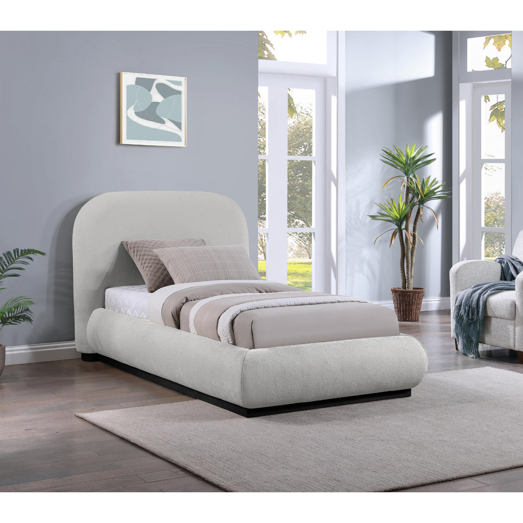 Transform your bedroom into a cozy and inviting retreat with the Vaughn Twin Bed. With its rich grey chenille textured fabric and solid wood base in a black finish, this bed exudes a warm and inviting ambiance that will make you feel right at home. Its soft and plush surface provides a cozy and comfortable retreat, while its sturdy and durable construction ensures that you can enjoy long-lasting comfort. So go ahead, treat yourself to a restful night's sleep in this exquisite bed, and wake up feeling refreshed and rejuvenated.