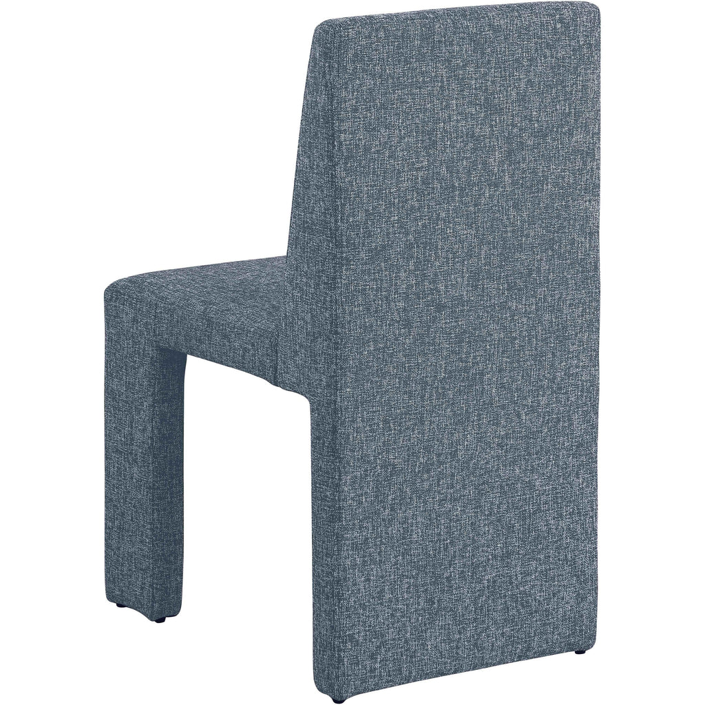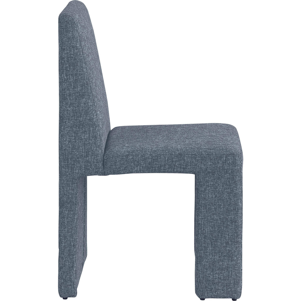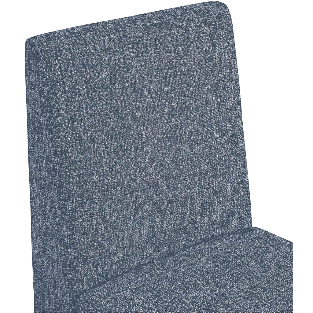 Revamp your dining area with these blue Benson linen textured fabric dining chairs, shipped in a carton of two. Upholstered in rich blue linen textured fabric with a subtle white weave, these chairs offer a stylish touch for your dining room makeover. The iron inner frame ensures sturdiness and complements the chairs' art deco design, while the armless, floor-length backs add a touch of sophistication to your dining space for daily meals and special occasions.