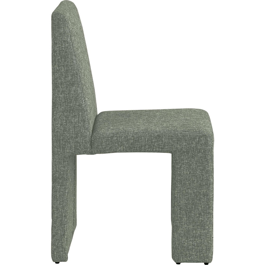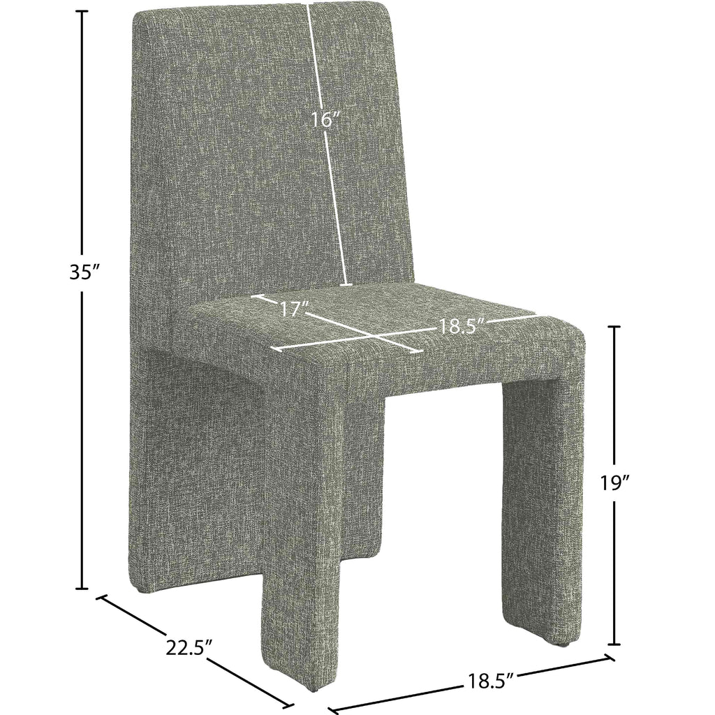 Enhance the ambiance of your dining area with these elegant Benson linen textured fabric dining chairs, which come in a set of two. Featuring a plush green upholstery with a subtle white weave, these chairs are the perfect addition to your dining room makeover. The chairs' sturdy iron inner frame ensures durability and complements their art deco design, while their armless and floor-length backs add a touch of sophistication to your dining space, making it ideal for both casual meals and formal occasions. Bring a touch of style and comfort to your dining area with these beautiful chairs.