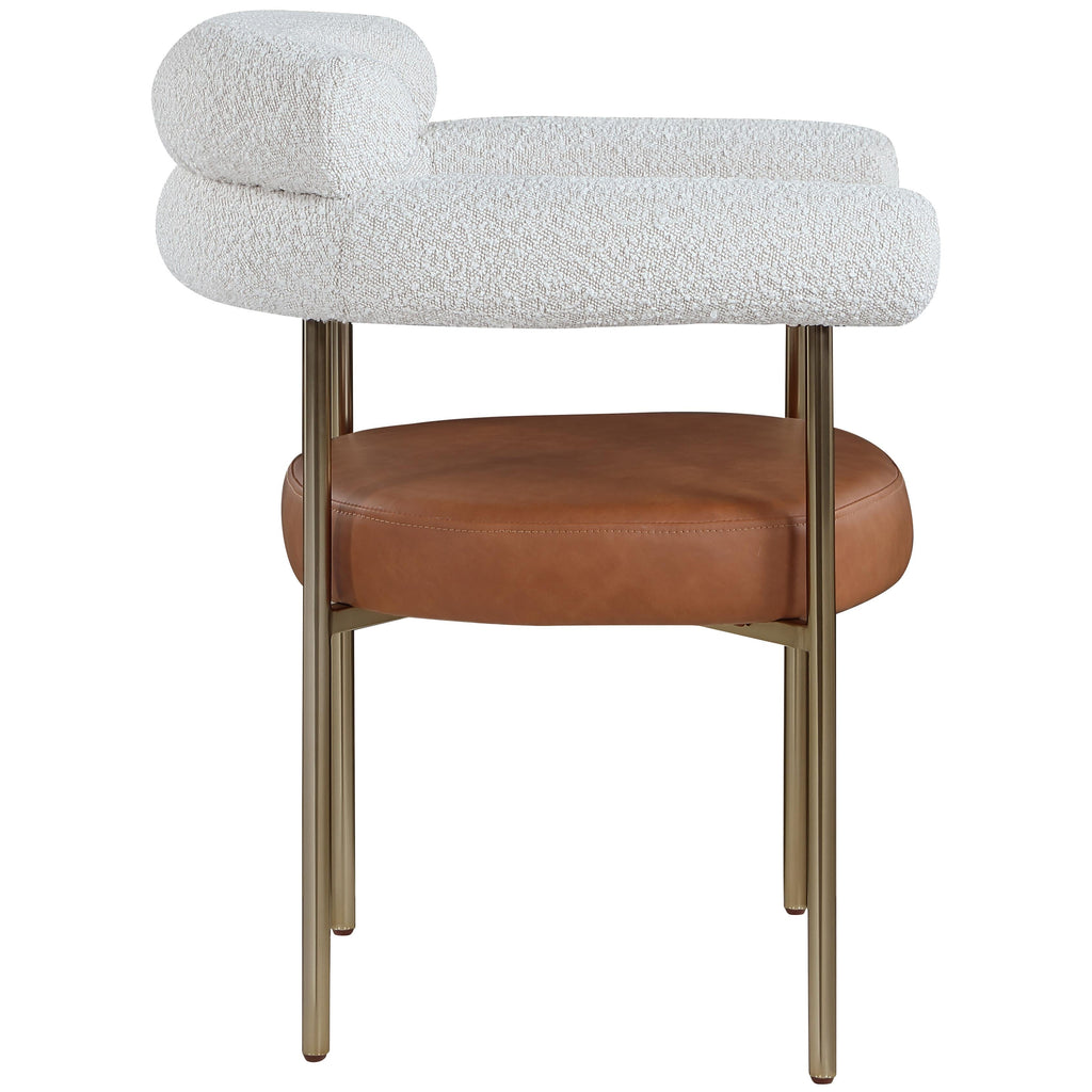 Meridian Blake Cognac Vegan Leather / Cream Boucle Fabric Dining Chair