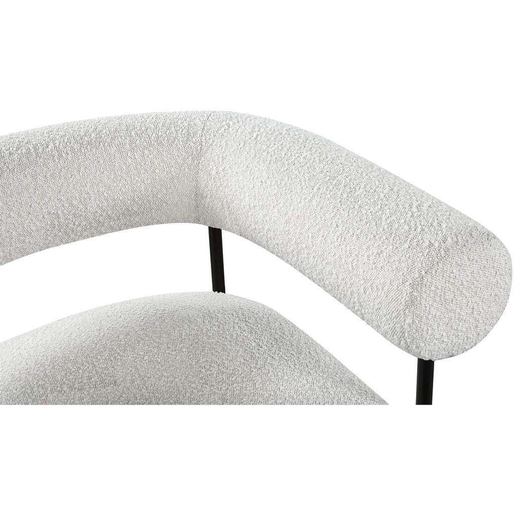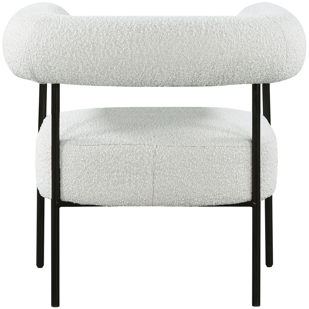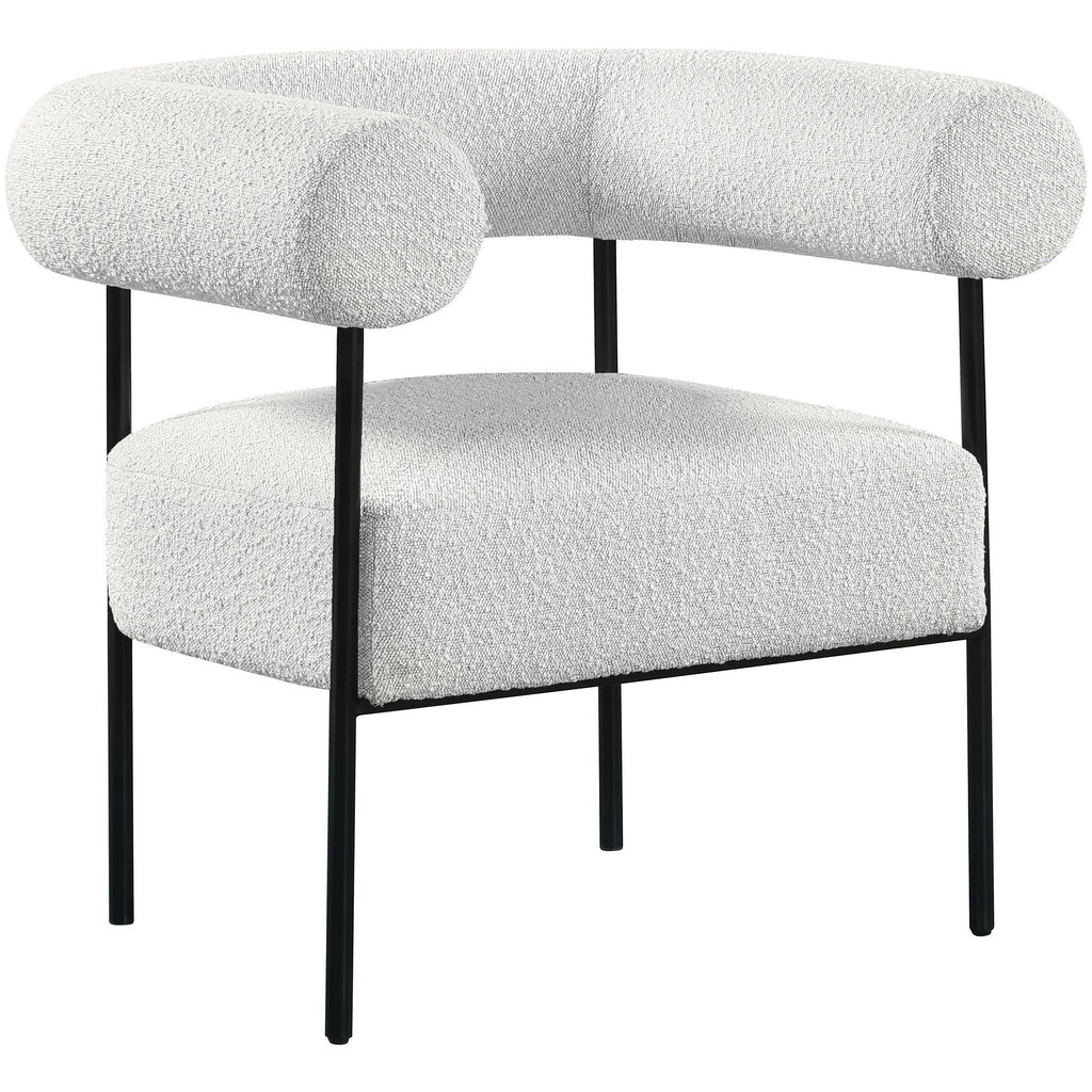 Modernize your home with this Blake accent chair. Featuring rich cream boucle fabric and a matte black metal frame, its contemporary design is sure to catch the eye of all your house guests. Crafted from a mixture of iron and foam, this accent chair is sturdy enough to seat just about anyone. Its curved back provides a comfortable resting place for your spine, and its thick foam cushion gives you a plush place to sit.
