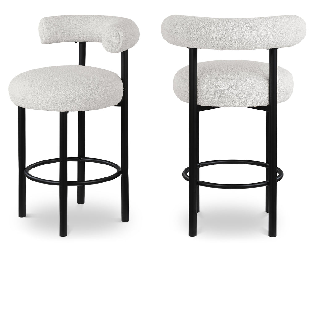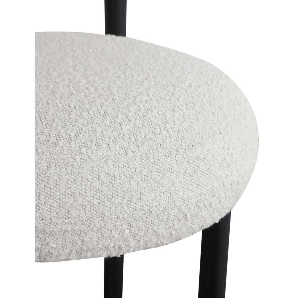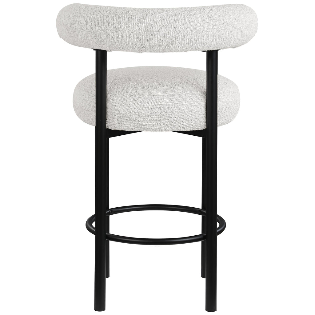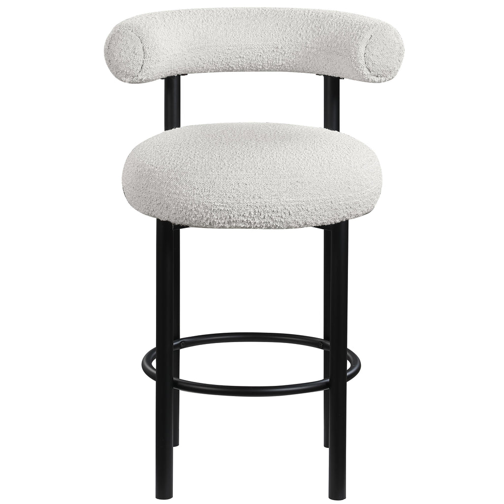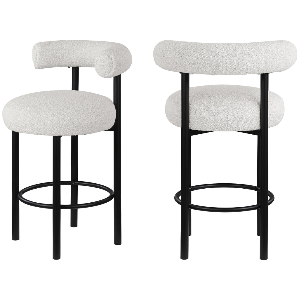 Give your kitchen counter or home bar a fresh face with this Bordeaux boucle fabric stool. This stool features rich cream boucle fabric upholstery on the curved back and seat, so guests sit comfortably for pancake breakfasts or their favorite spirits. The iron metal frame is durable, tough, and sturdy, so it holds up to long-term enjoyment by family and friends. A matte black finish lends the stool an uber modern feel.