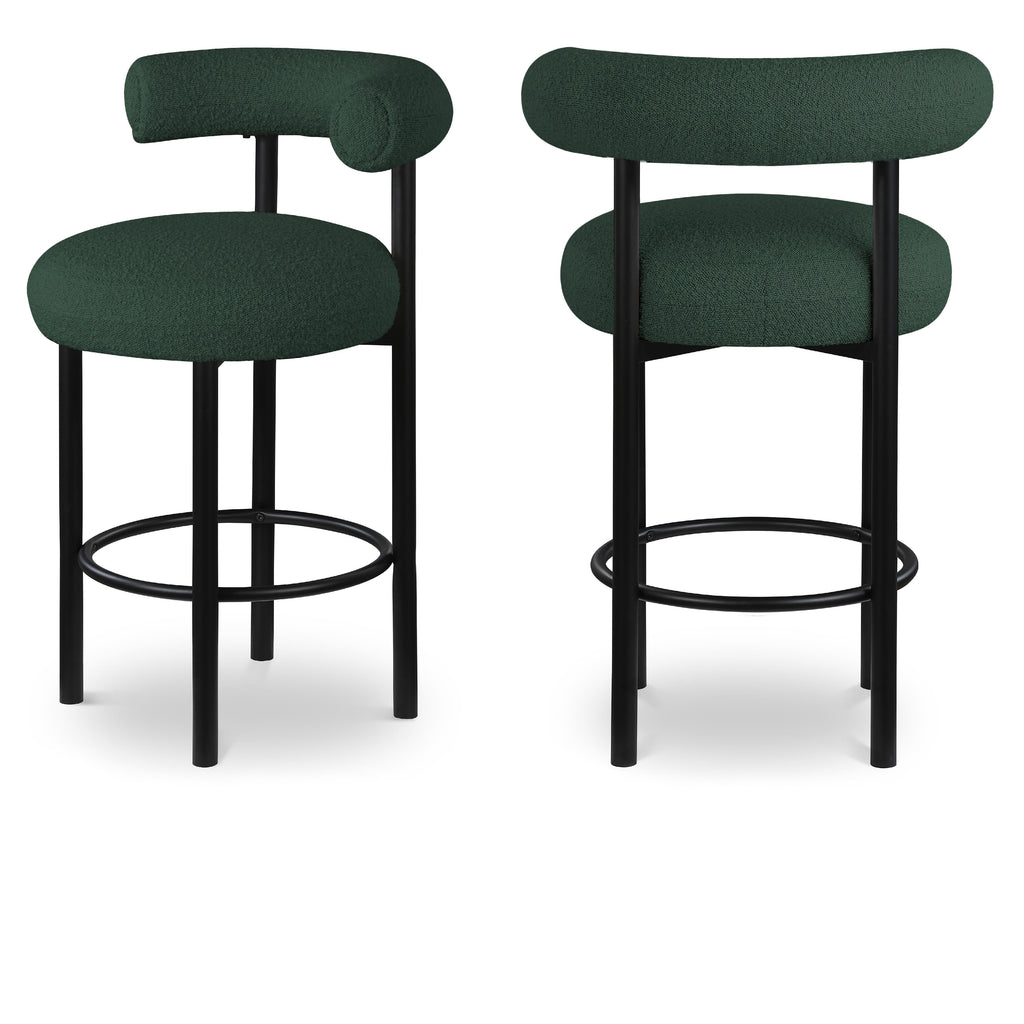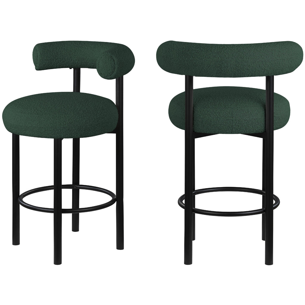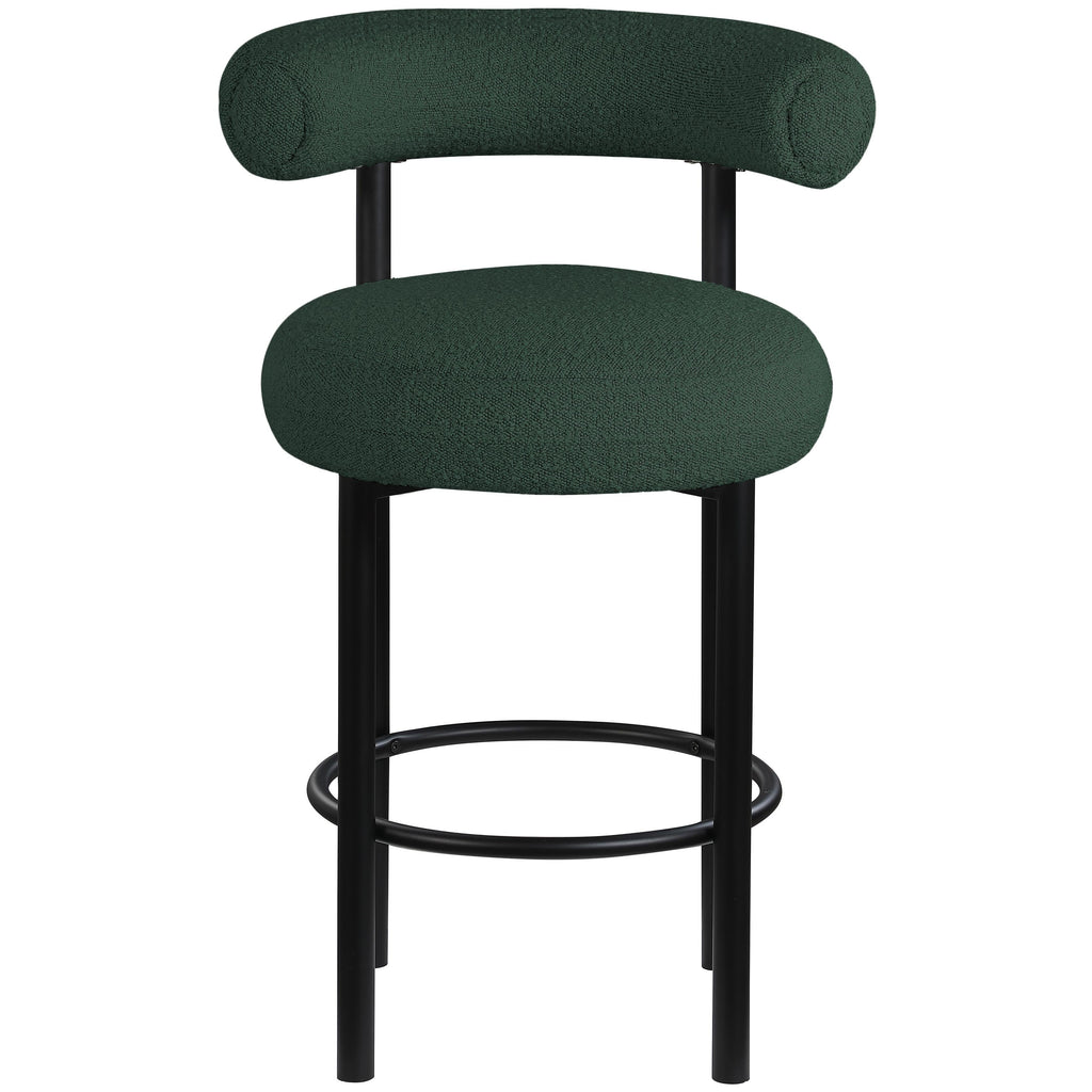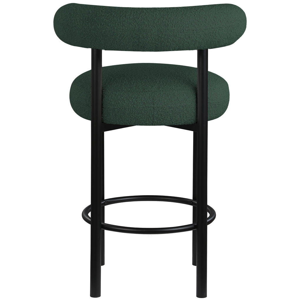 Give your kitchen counter or home bar a fresh face with this Bordeaux boucle fabric stool. This stool features rich green boucle fabric upholstery on the curved back and seat, so guests sit comfortably for pancake breakfasts or their favorite spirits. The iron metal frame is durable, tough, and sturdy, so it holds up to long-term enjoyment by family and friends. A matte black finish lends the stool an uber modern feel.