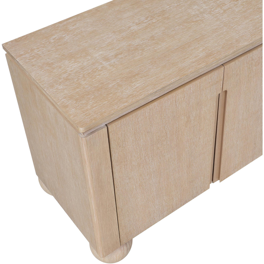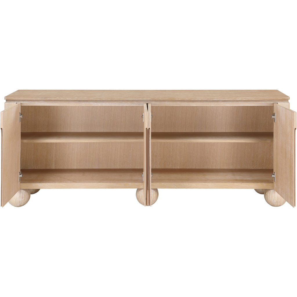 Transform your dining space into a haven of modern elegance with the Cardiff Natural Sideboard Buffet. Featuring a rich natural oak finish, it creates a sleek and modern aesthetic. Crafted mostly from solid wood with oak veneer made from rubberwood, as well as some parts made from MDF plywood, it boasts natural wood grain variation for added charm. This versatile piece serves as an elegant storage solution and a stylish platform for decorations. With doors designed to conceal cutlery, dishes, napkins, and dining supplies, it ensures your dining area stays organized and clutter-free. Elevate your dining experience with this handsome sideboard buffet that meshes practicality and sophistication effortlessly.