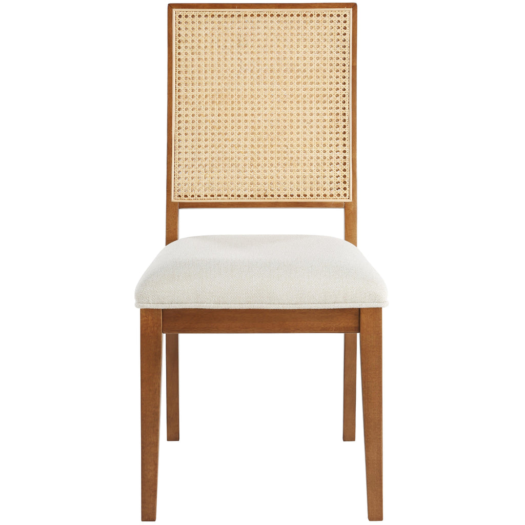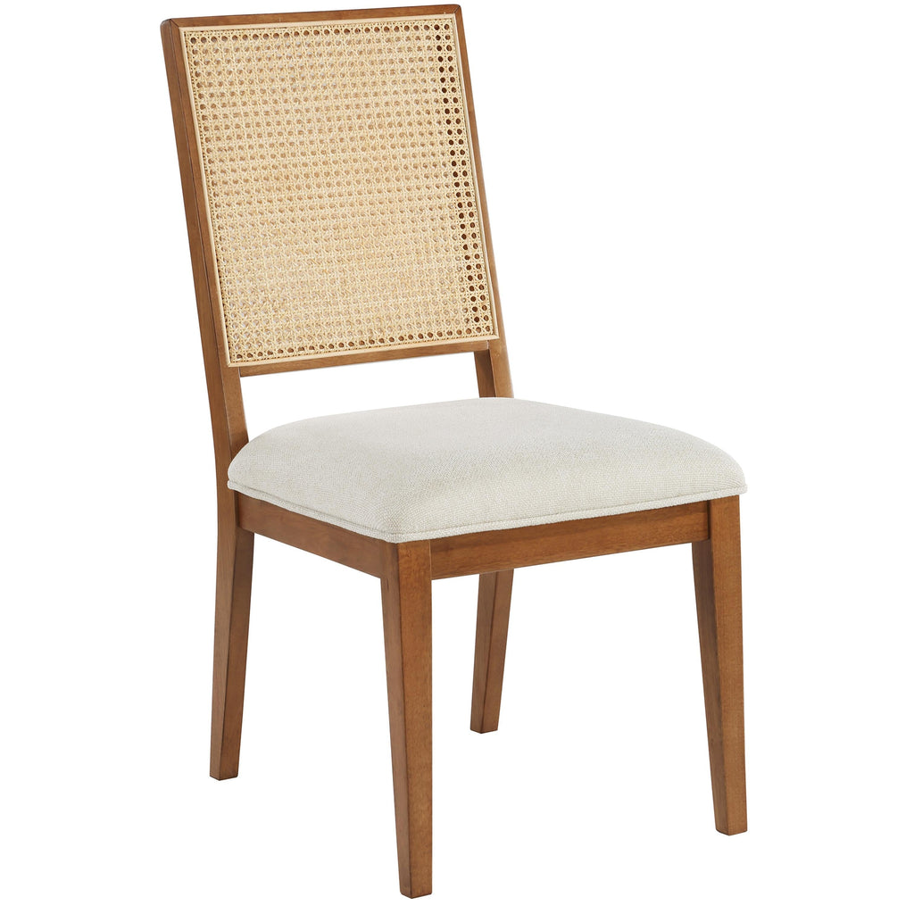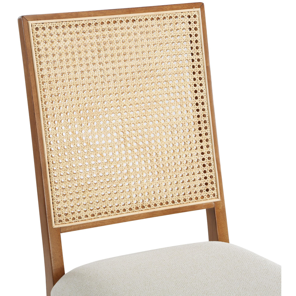 Give your dining space a traditional makeover with this Butterfly dining chair from Meridian Furniture. Its solid rubber wood frame features a sleek walnut finish, and its cushion is upholstered in soft cream linen-like polyester fabric, providing comfort and complementary colors to your dining table. Its natural cane back is reminiscent of a mid-century design, so you can relax in style as you dine, and making this piece right at home in any living space.