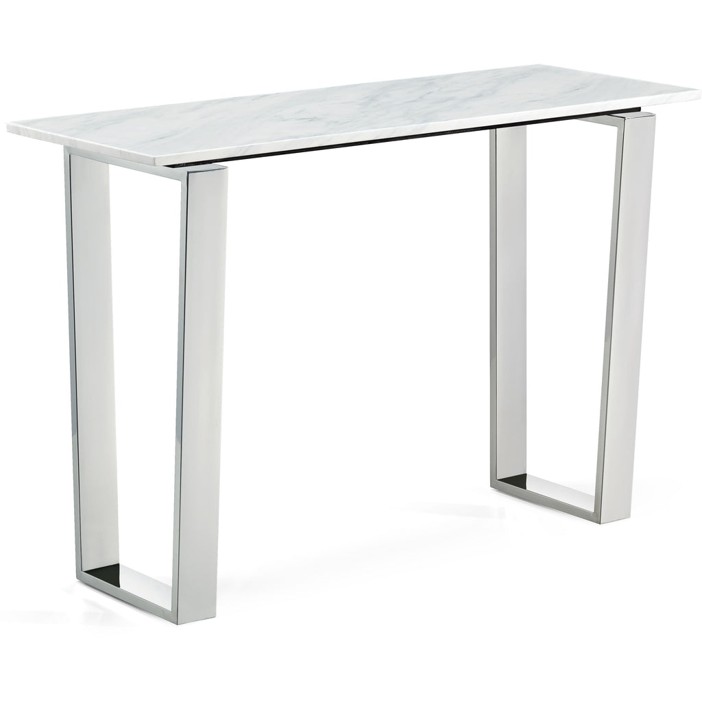 Pull your living room together with this stunning Carlton chrome console table by Meridian Furniture. This gorgeous contemporary chrome console table features a solid stone top that offsets its rich chrome stainless steel legs, providing the perfect contrast for a modern look. A shiny chrome finish ensures this table will be the highlight of your living room.