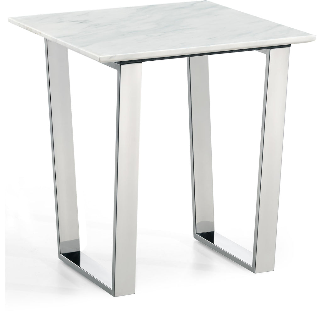 Pull your living room together with this stunning Carlton chrome end table by Meridian Furniture. This gorgeous contemporary chrome end table features a solid stone top that offsets its rich chrome stainless steel legs, providing the perfect contrast for a modern look. A shiny chrome finish ensures this table will be the highlight of your living room.