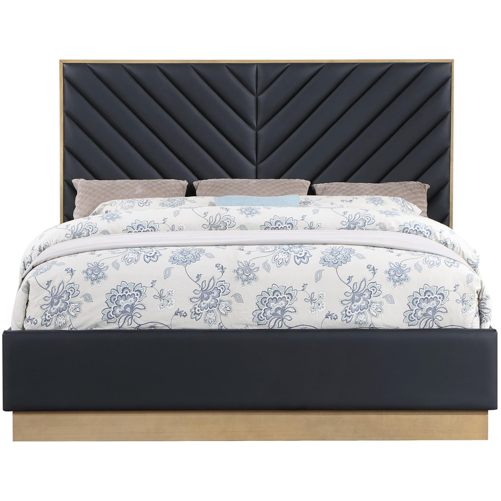 Feel like an MVP every time you curl up in this Casa queen bed. The soft black vegan leather covering the headboard and sides of this sumptuously crafted bed gives you an upscale look without the commitment and maintenance needs of leather. Deep chevron channel tufting adds a bold look while the padded headboard makes a great back rest while watching TV or reading. On its base, the bed's rich natural finish provides an eye-grabbing contrast that's hard to ignore.