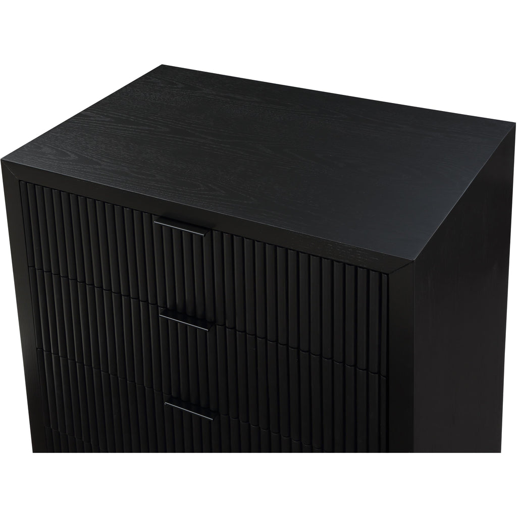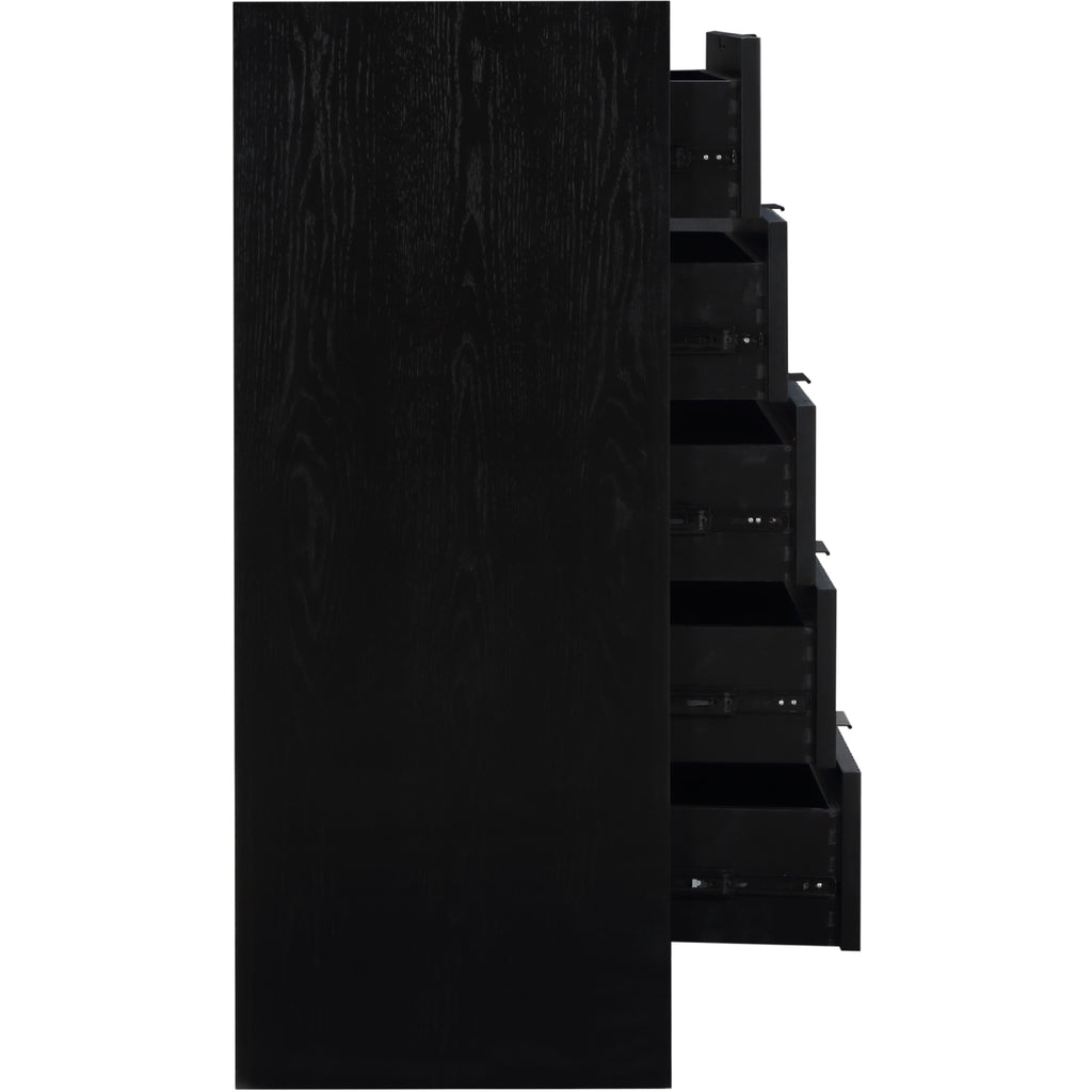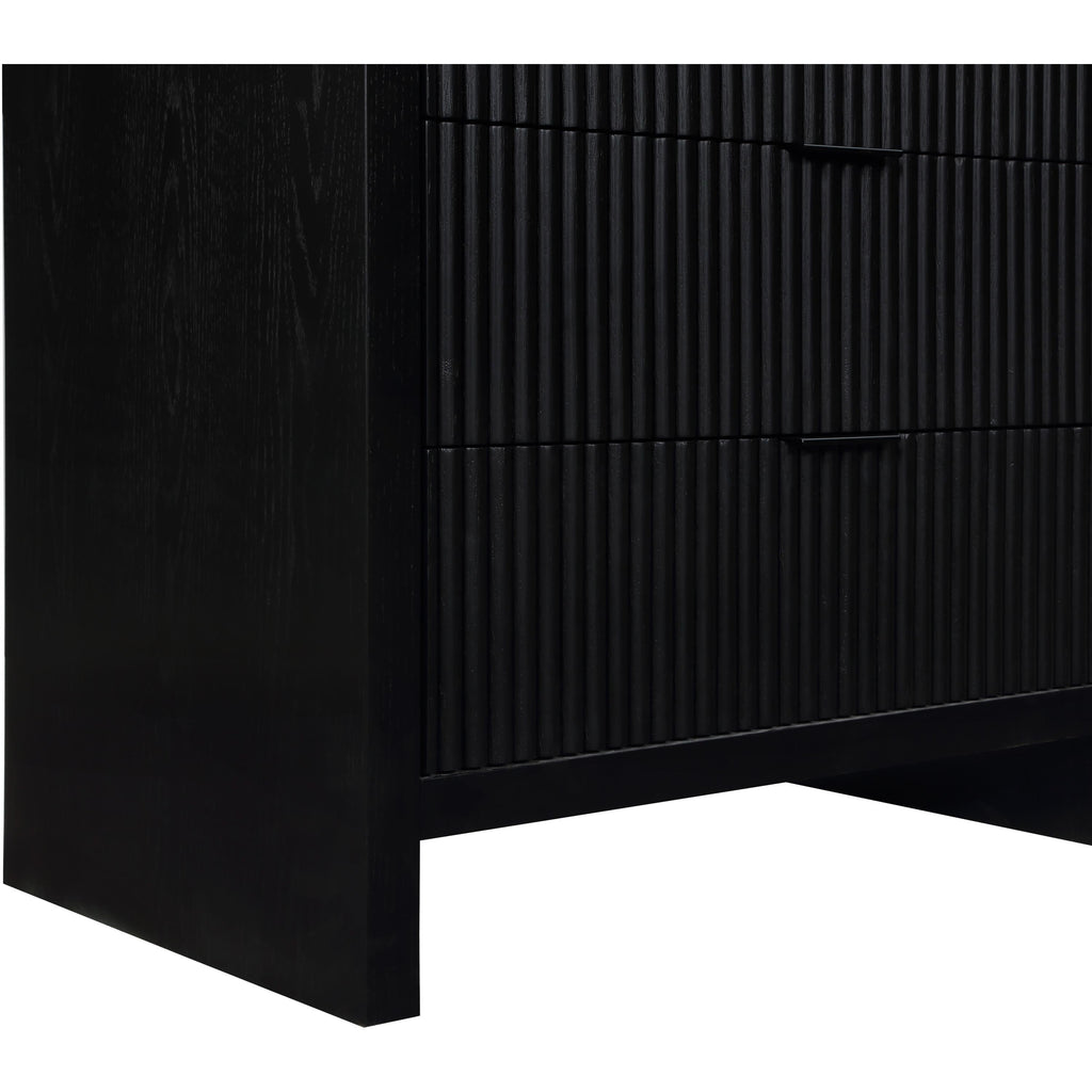 The exquisite Fairfax Chest is a perfect blend of style and functionality. The meticulously crafted fluted drawer fronts, with their subtle grooves, lend a touch of sophistication to the piece. The matte black metal handles are not only visually appealing but also easy to grip, making it effortless to open and close the drawers. The chest is crafted from solid wood, providing a durable and sturdy construction. Its sleek black finish enhances its modern and contemporary appeal, making it an exceptional addition to any living space.