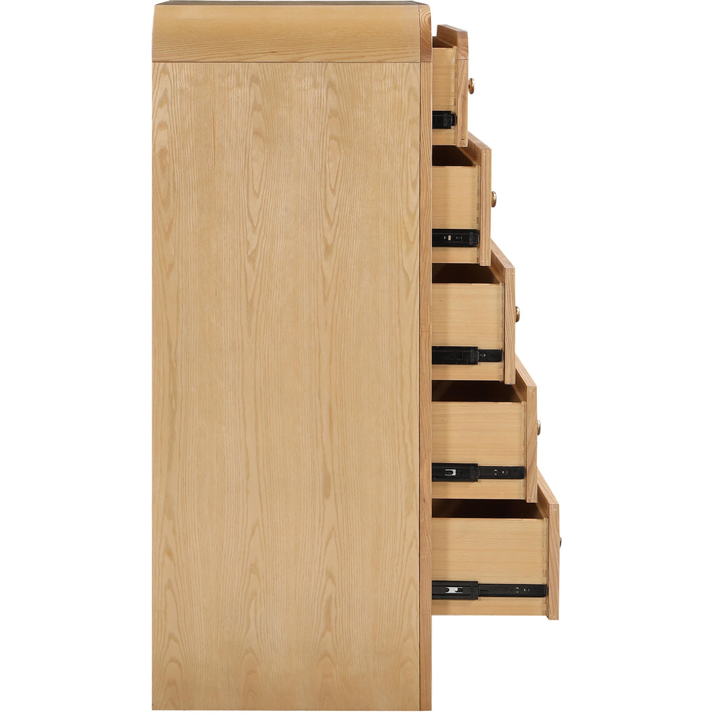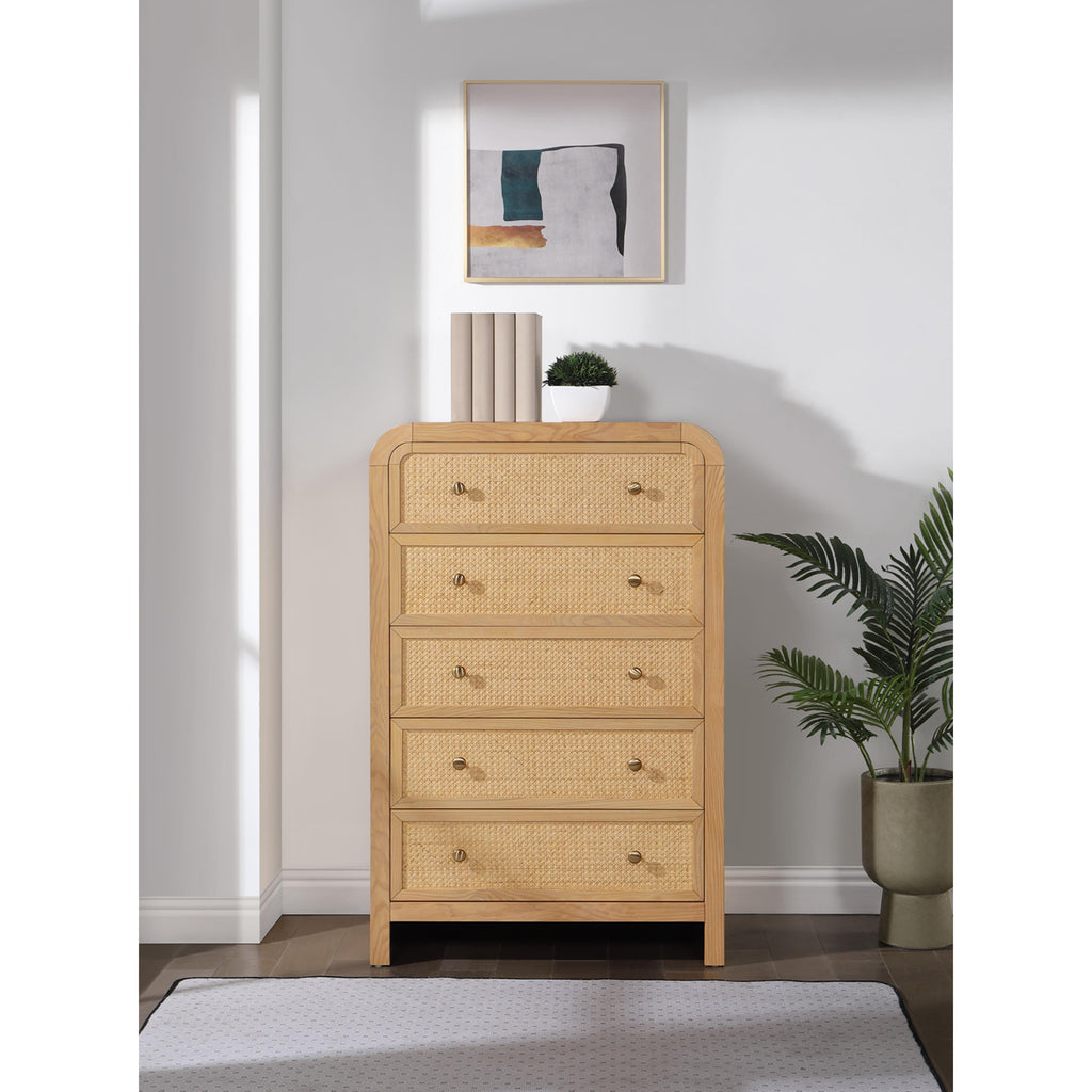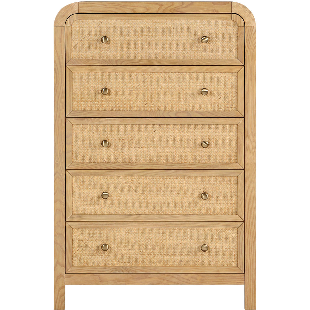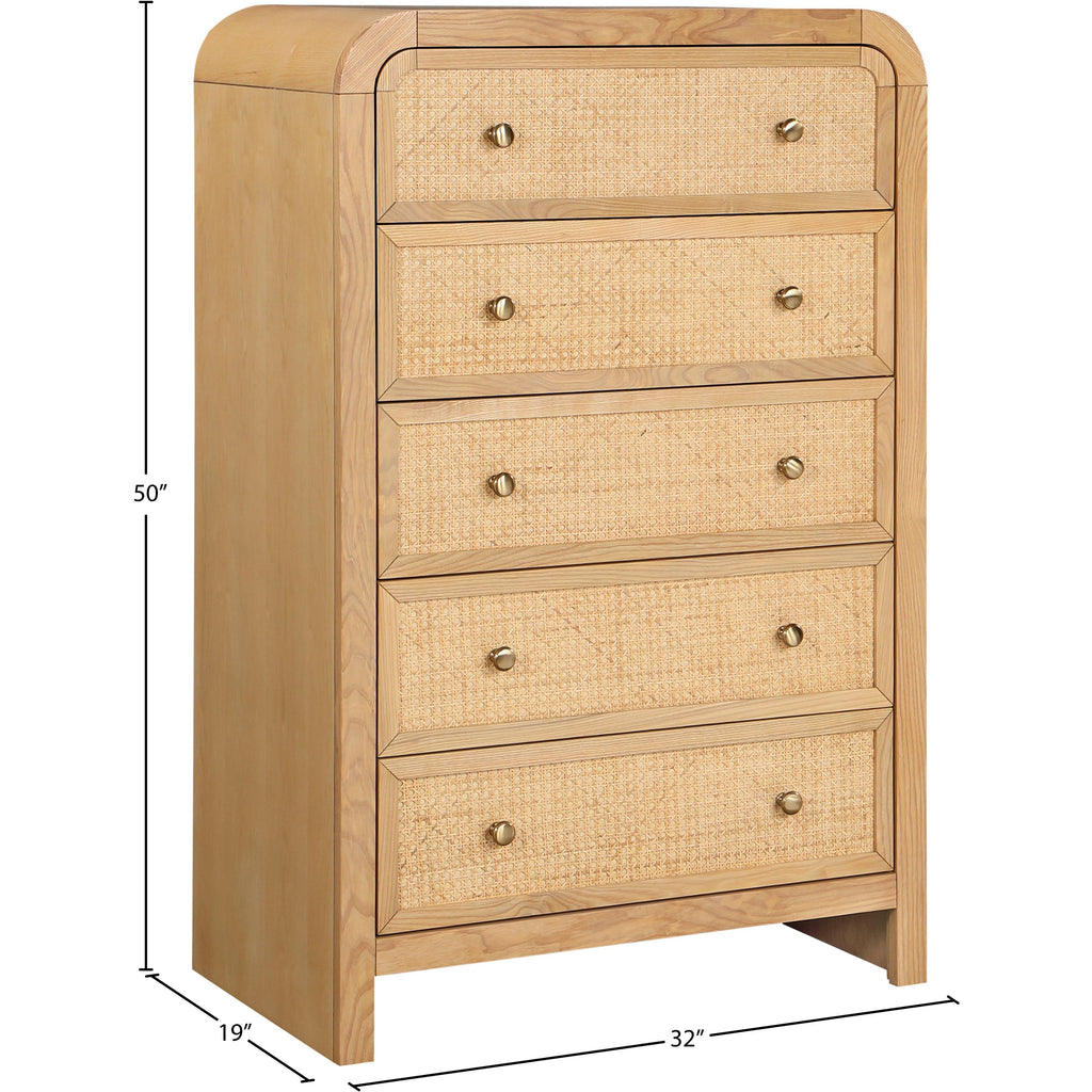 Introduce a touch of elegance and comfort to your bedroom by incorporating the Siena Chest into your decor. The natural cane drawers and stunning natural ash veneer finish create a striking contrast that exudes charm and sophistication. The chest is constructed from ash wood, ensuring both durability and longevity. Its sleek and modern design makes it an ideal addition to any contemporary bedroom aesthetic. Experience the perfect blend of functionality and style with the Siena Natural Chest.