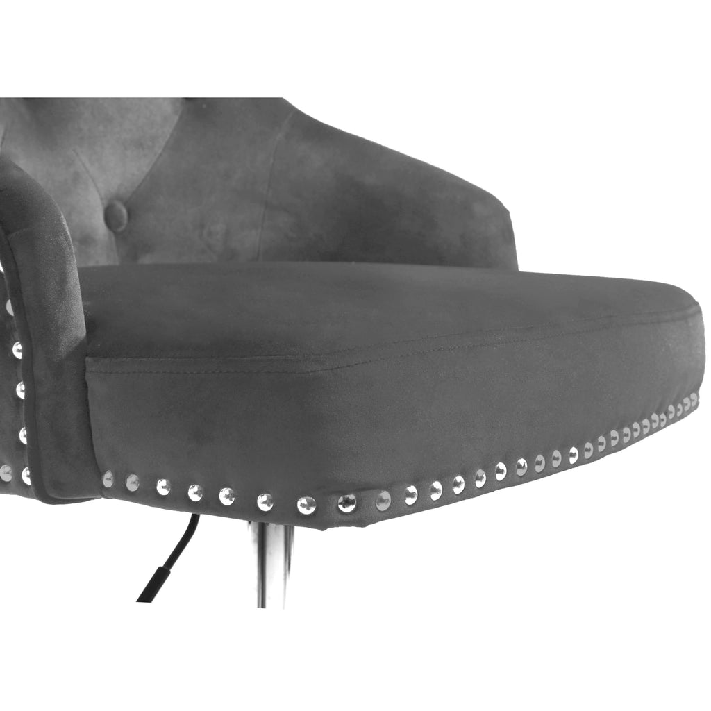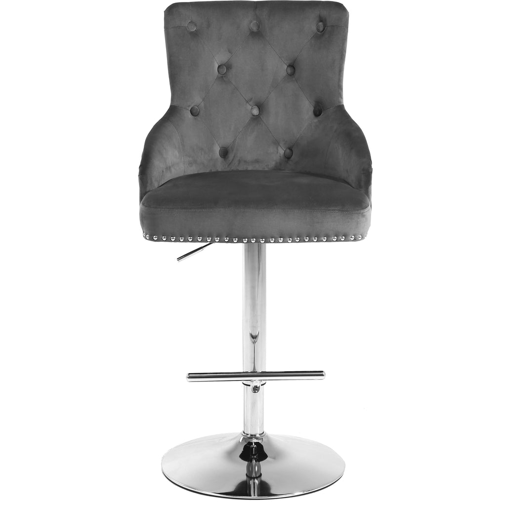 Make this Claude Grey Velvet Adjustable Stool everyone's new favorite seat. The high-back design supports guests in comfort, while rich velvet upholstery in a crisp grey color gives the stool a svelte, modern look. Chrome nailhead trim adds another level of luxury, and the tufted design enables the cushioned back to keep its loft for maximum comfort. Add it to the bar or the kitchen counter to create a modish vibe in your room.