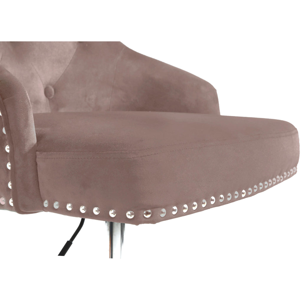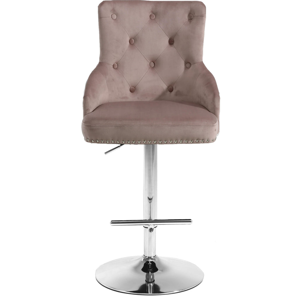 Make this Claude Pink Velvet Adjustable Stool everyone's new favorite seat. The high-back design supports guests in comfort, while rich velvet upholstery in a crisp pink color gives the stool a svelte, modern look. Chrome nailhead trim adds another level of luxury, and the tufted design enables the cushioned back to keep its loft for maximum comfort. Add it to the bar or the kitchen counter to create a modish vibe in your room.